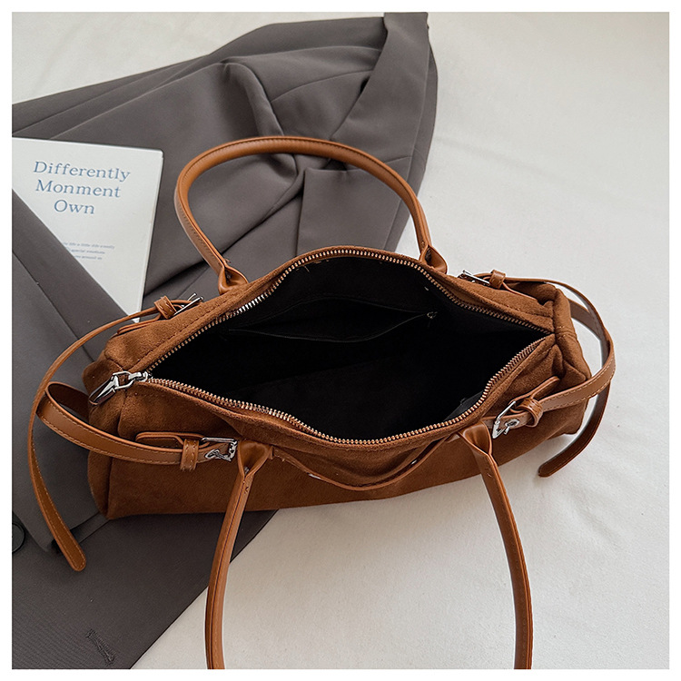 クロスボーダー大容量スエードつや消しハンドバッグ r.ow レトロトートデザイン気質ハイエンドショルダーバッグ