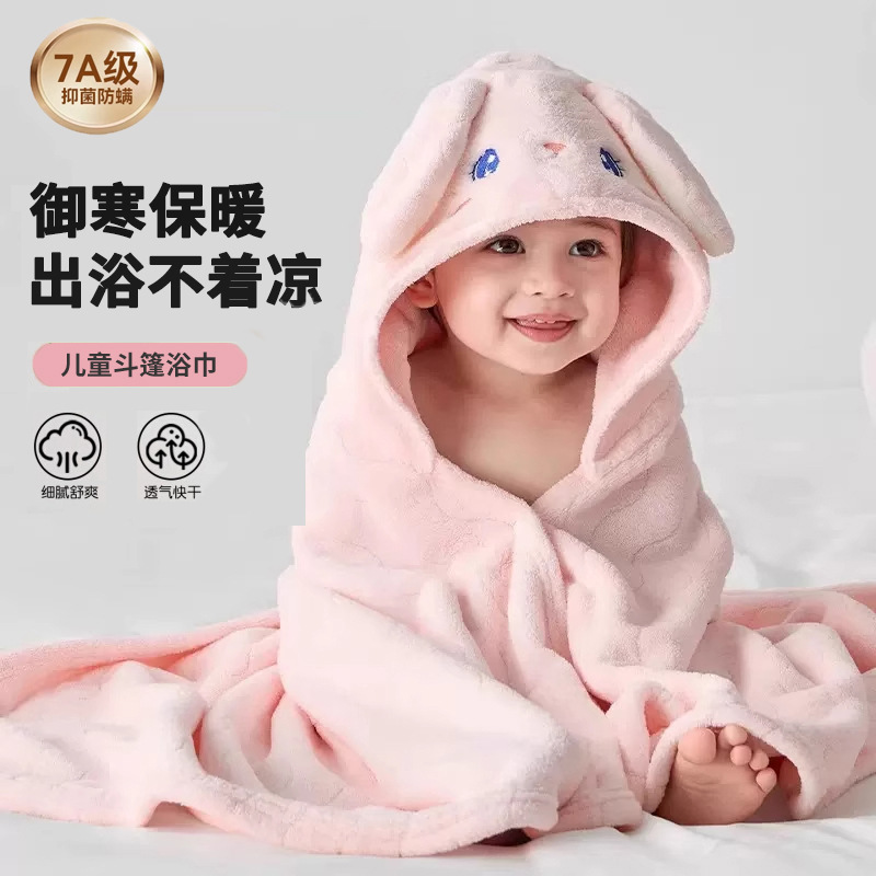 新款珊瑚绒儿童浴巾带帽斗篷加厚宝宝可穿式浴袍吸水卡通连帽浴巾