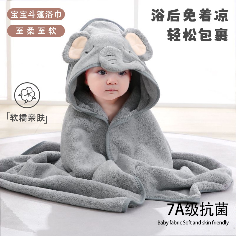 珊瑚绒儿童斗篷浴巾新生儿洗澡包巾浴巾可爱卡通斗篷浴袍