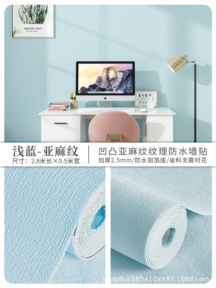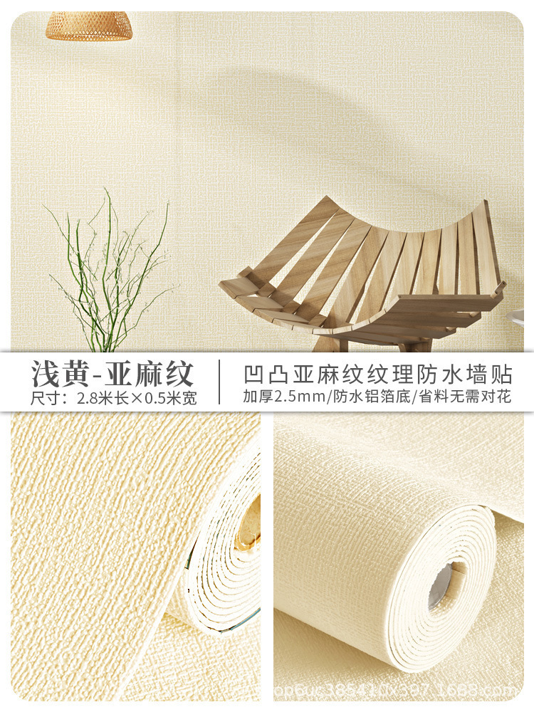工厂直销亚麻纹家用办公室装修防水防潮墙贴掉灰墙专用防霉壁纸