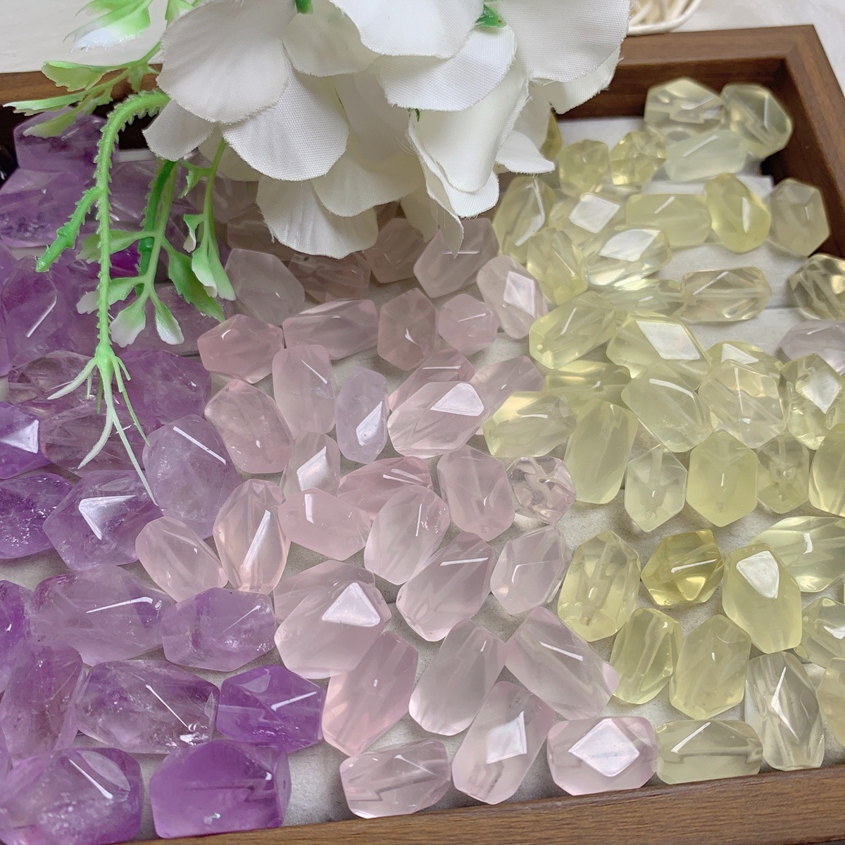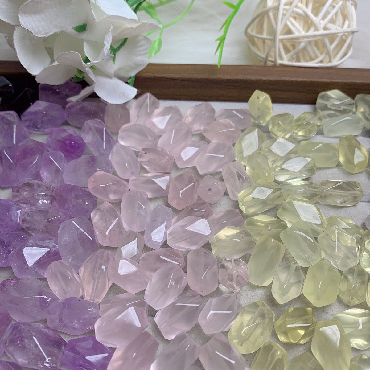 天然紫晶粉晶黄晶茶晶随形配件 晶体通透 颜色鲜艳 厂家直销批发
