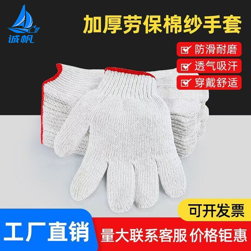 劳保手套白线棉线纯棉耐磨耐用干活用的手套男女工地加厚厚款