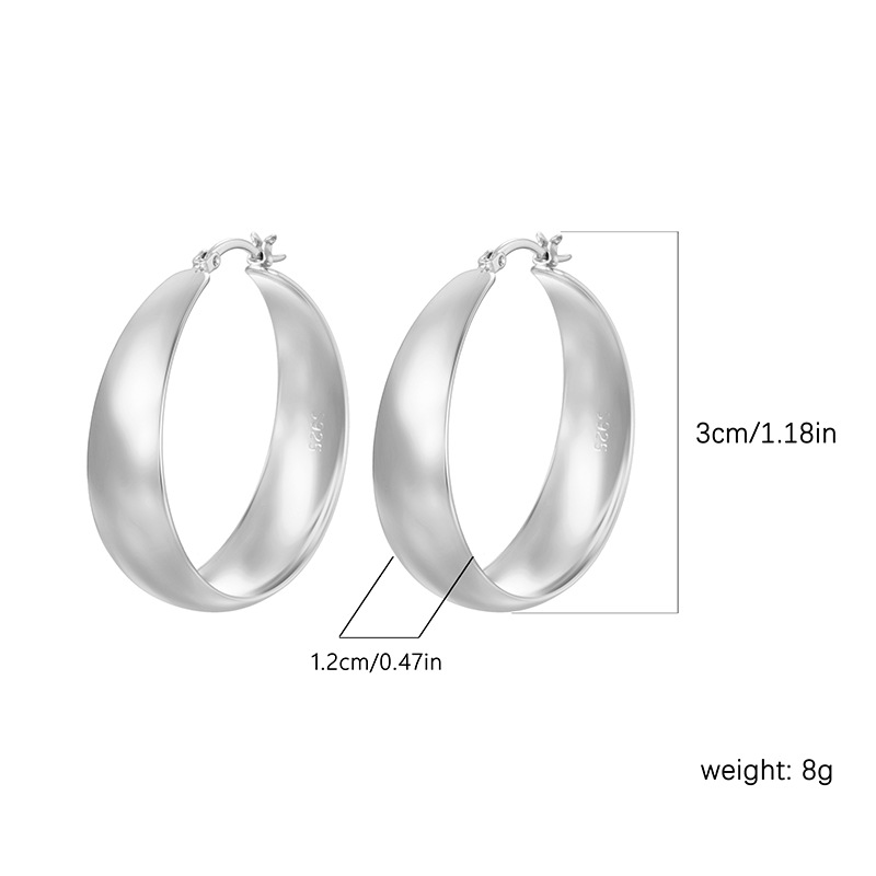欧美跨境黄铜18k金宽面弧形耳环C形圆圈耳扣薄片质感简约耳饰品
