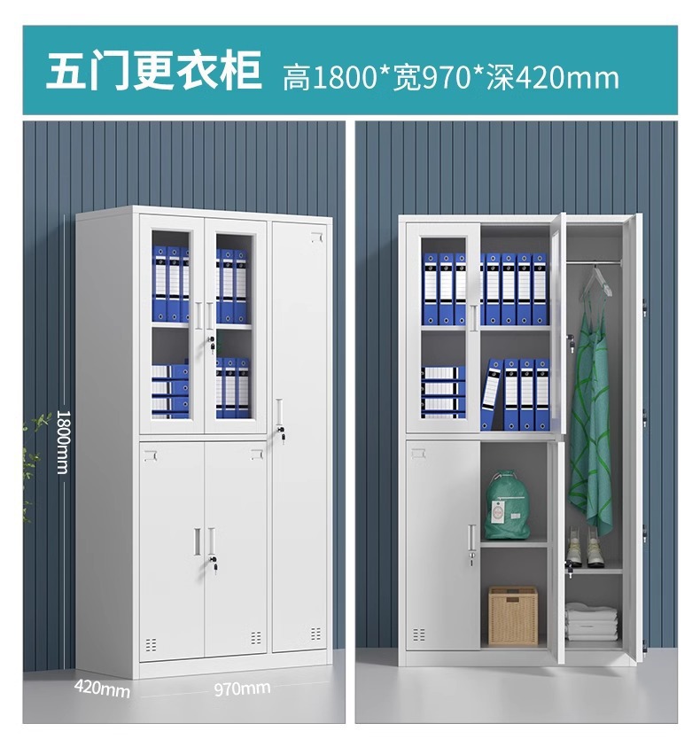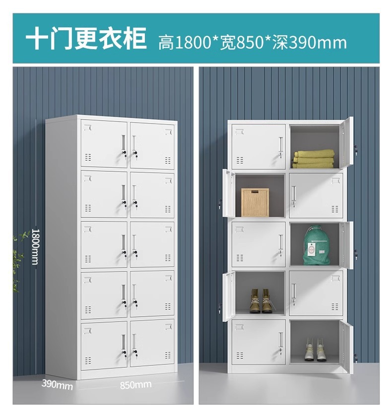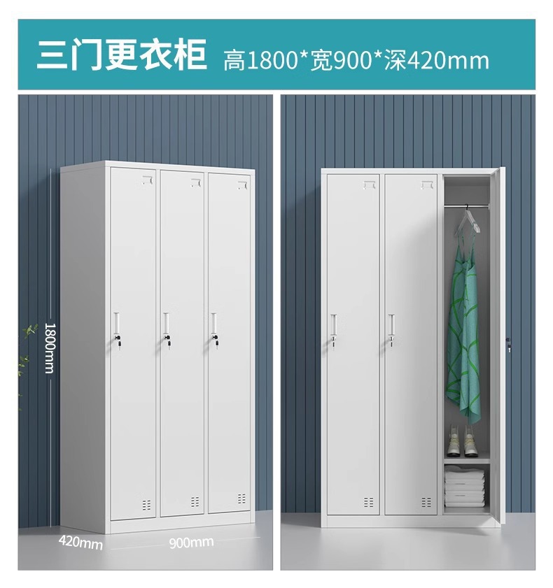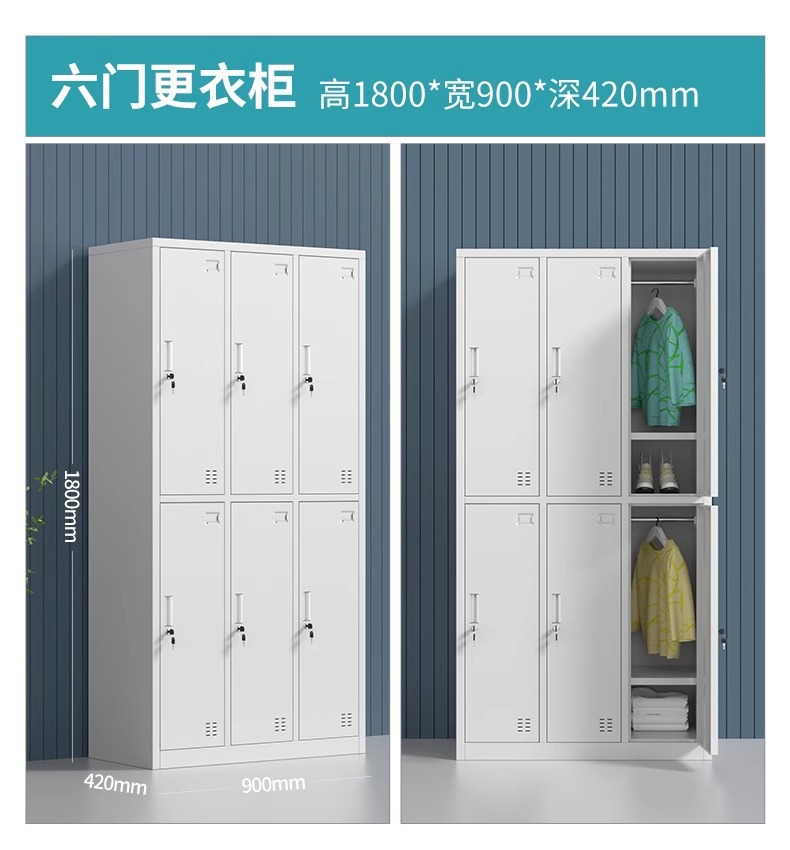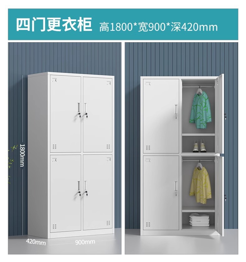 钢制员工铁皮柜更衣柜子工厂职员宿舍换衣柜带锁储物柜简约多门柜