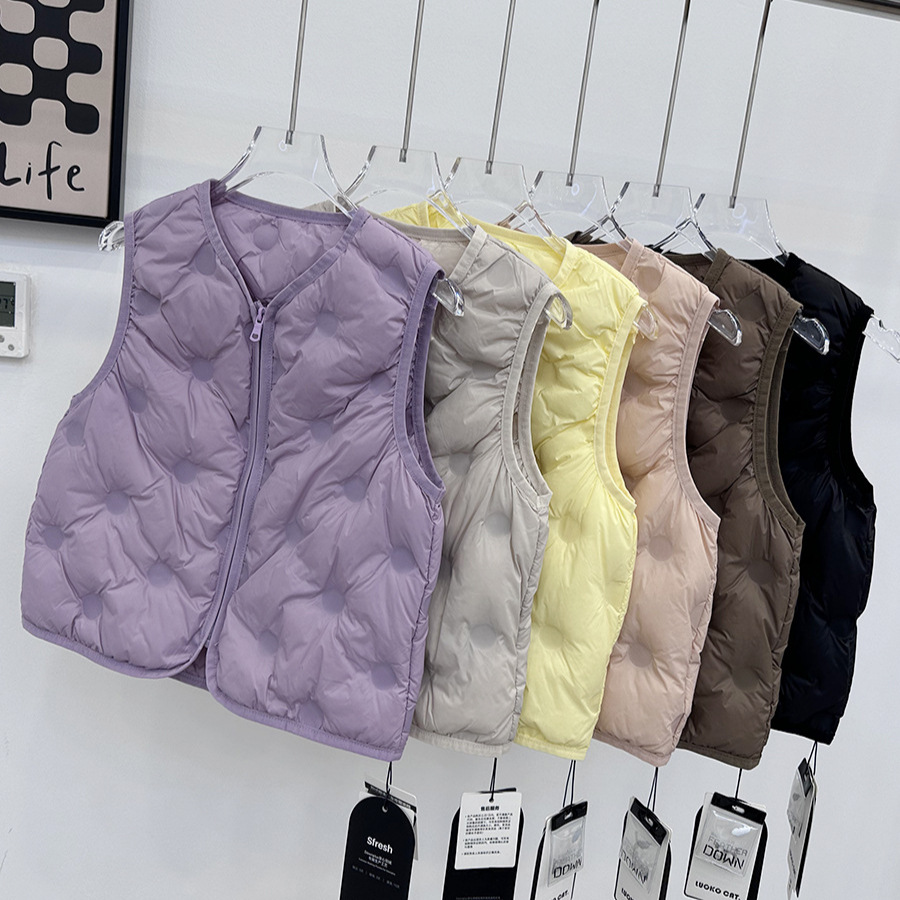 シームレスラミネート子供用 90 ホワイトダックダウンベスト 2025 小中型子供用軽量フード付きダウンジャケット外国貿易