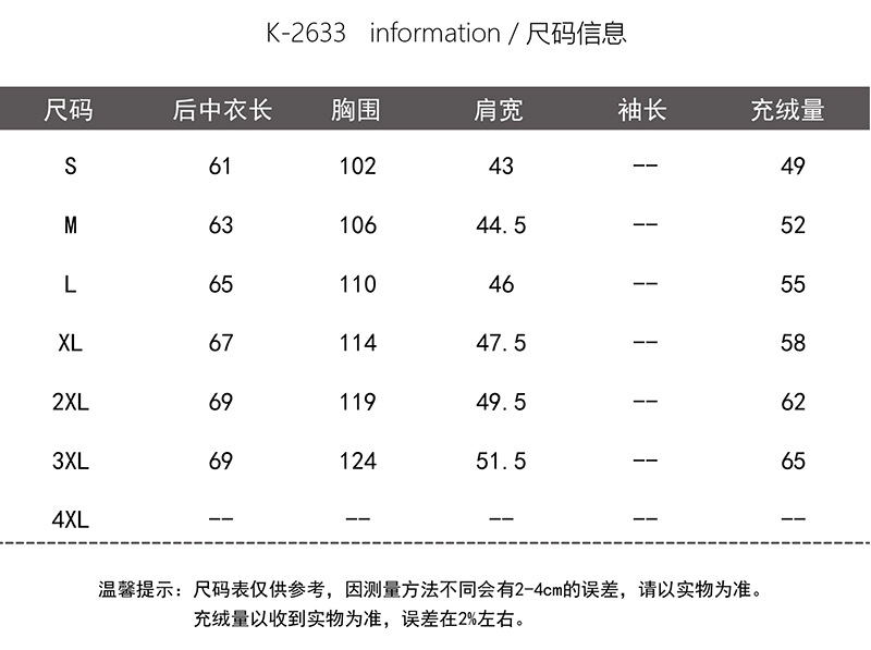 充绒量 100g以下(不含)
