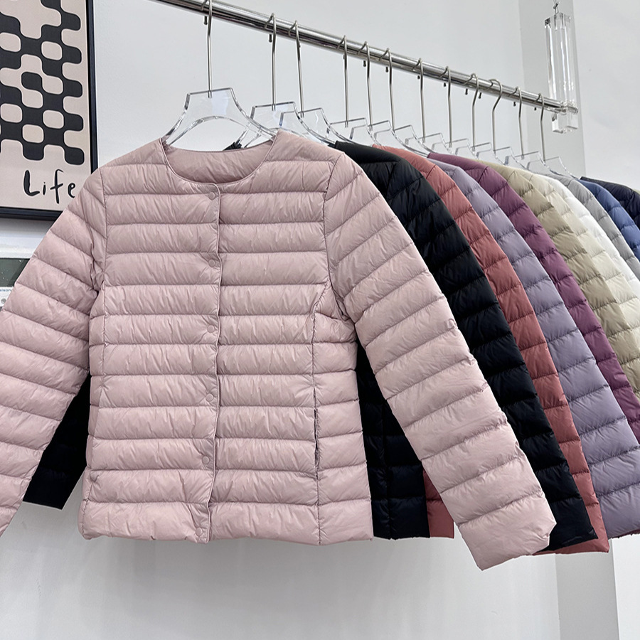 嘉兴平湖羽绒服短款轻型长袖薄款无领V领轻薄内胆女U家同款打底衫