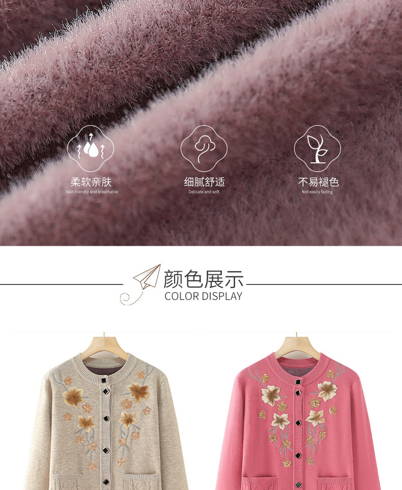 中老年人毛衣女外套奶奶衣服冬装妈妈针织衫加厚保暖衣开衫打底衫