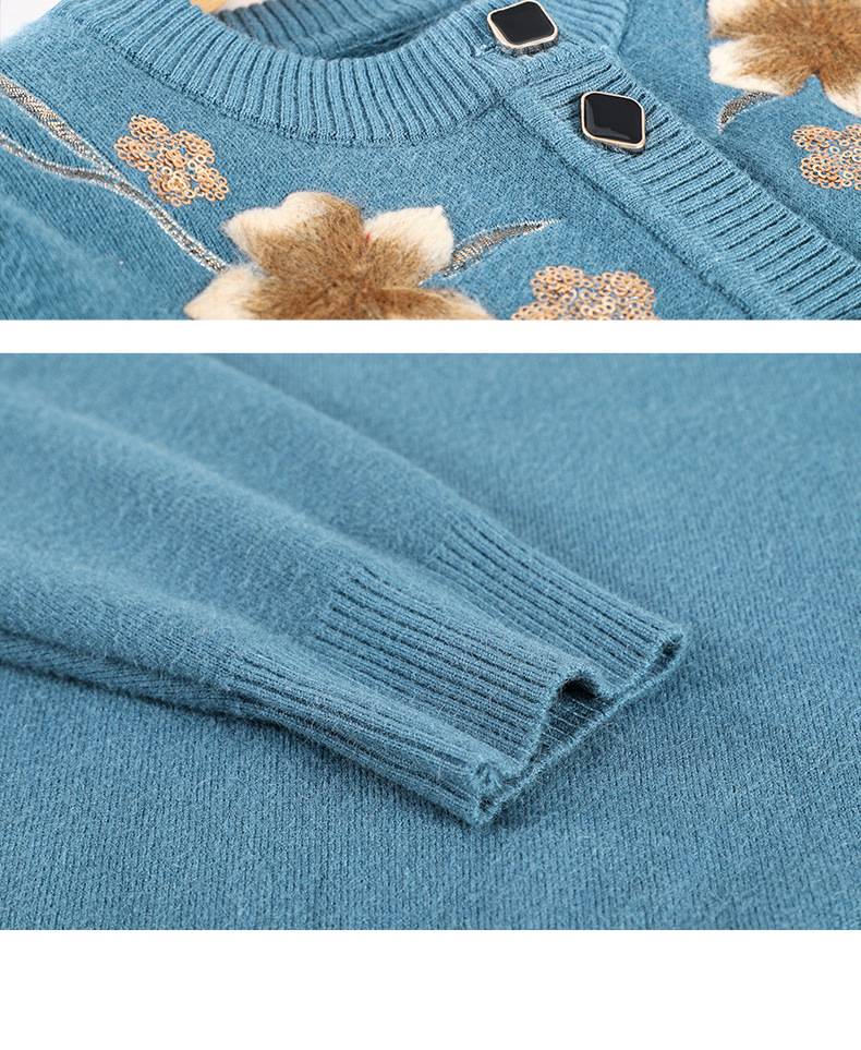 中高年の春秋ニットの女性のお母さんは新型の長袖のカーディガンのおばあさんの秋の大きいサイズのミンクの毛のコートを詰めます。
