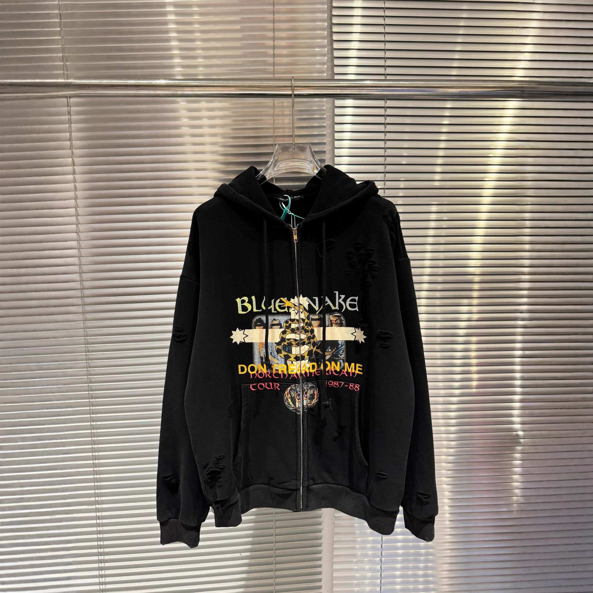 Project 25s's蛇年限定乐队印花做旧破坏破洞帽衫外套卫衣