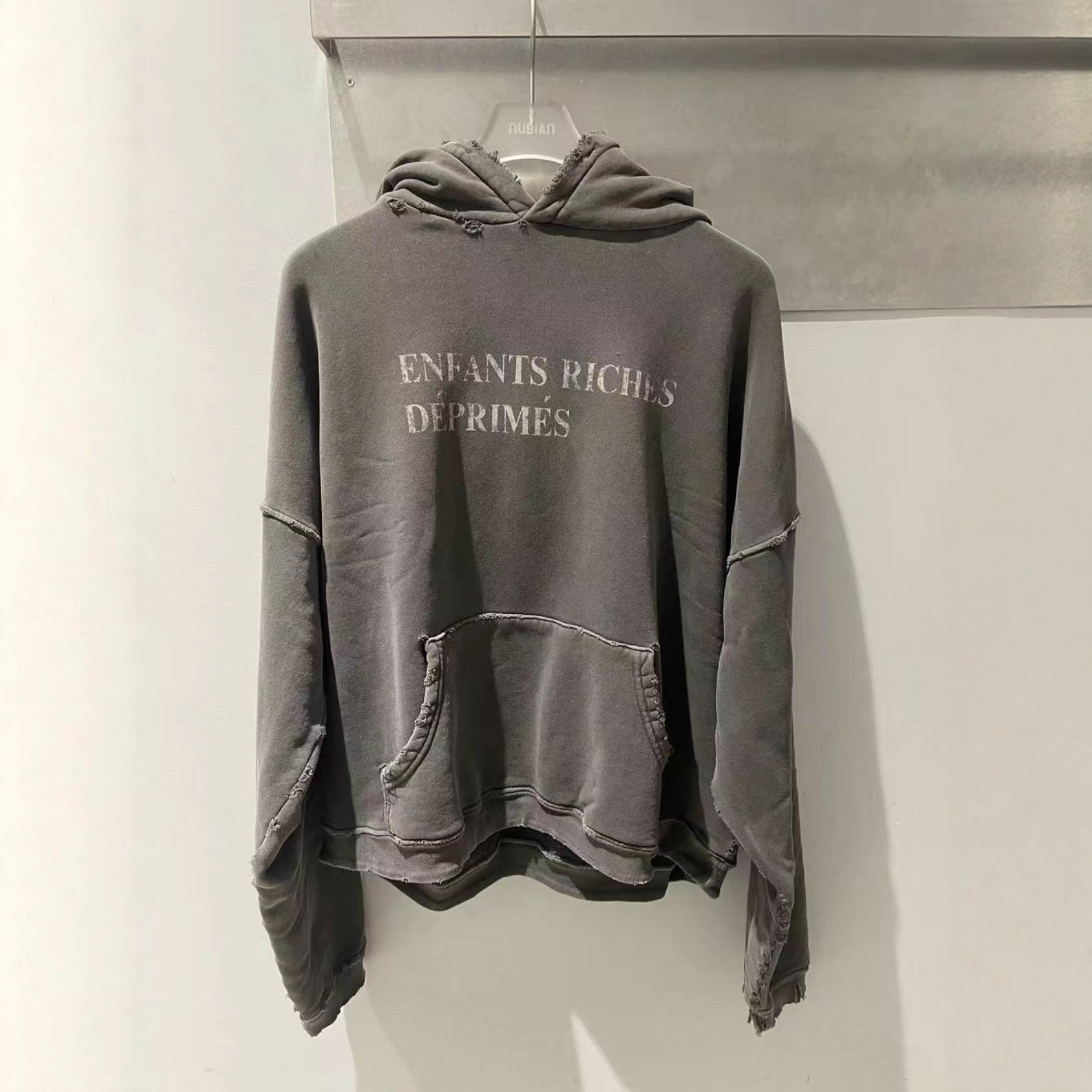 忧郁的富二代ERD字母标语水洗破坏拔染日晒褪色卫衣连帽衫