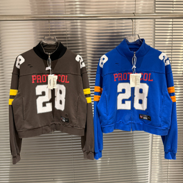 Protocol Index足球服夹克外套水洗破坏刺绣贴布马嘉祺同款卫衣