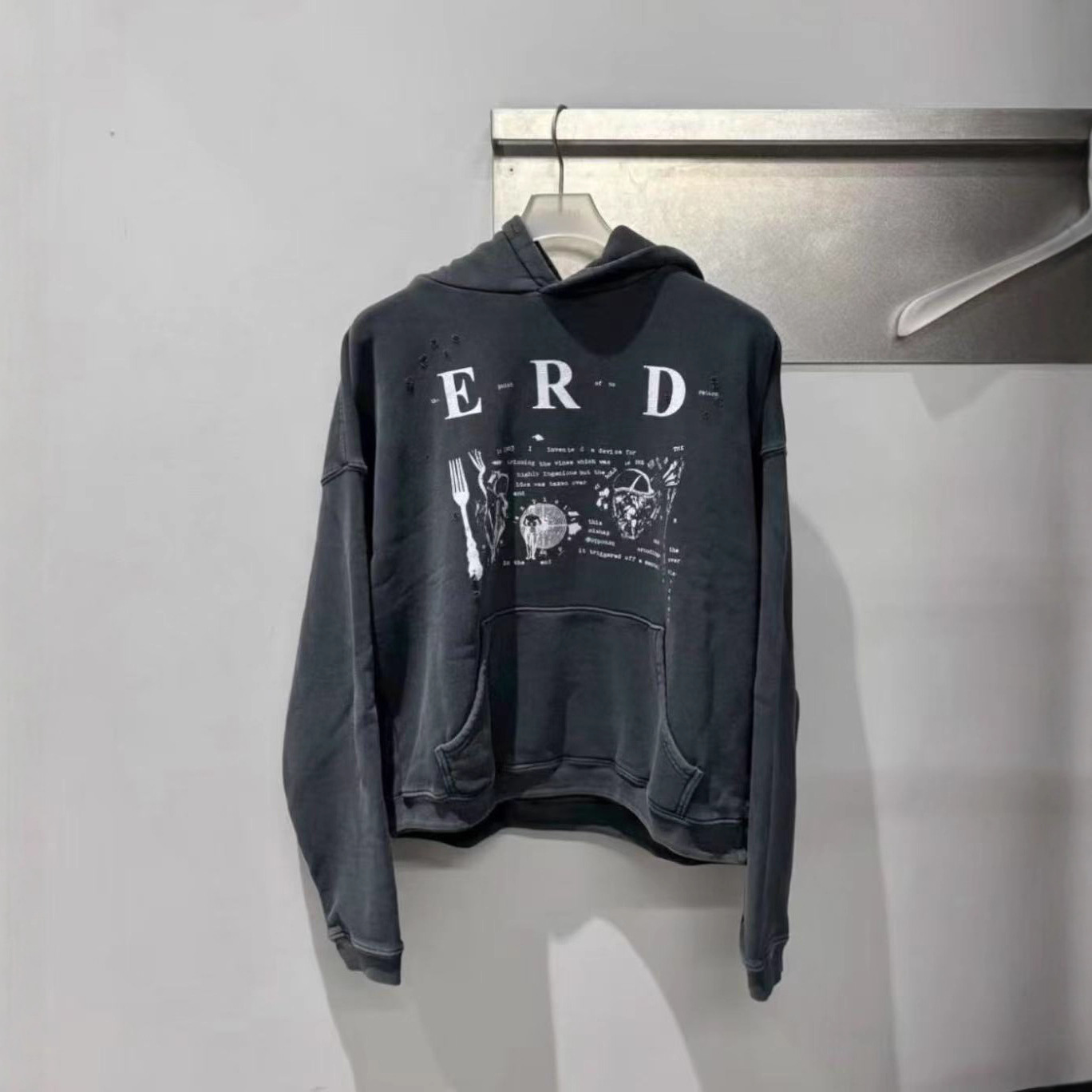 erd忧郁的富二代25ss战争角色水洗做旧连帽卫衣美潮宽松休闲帽衫