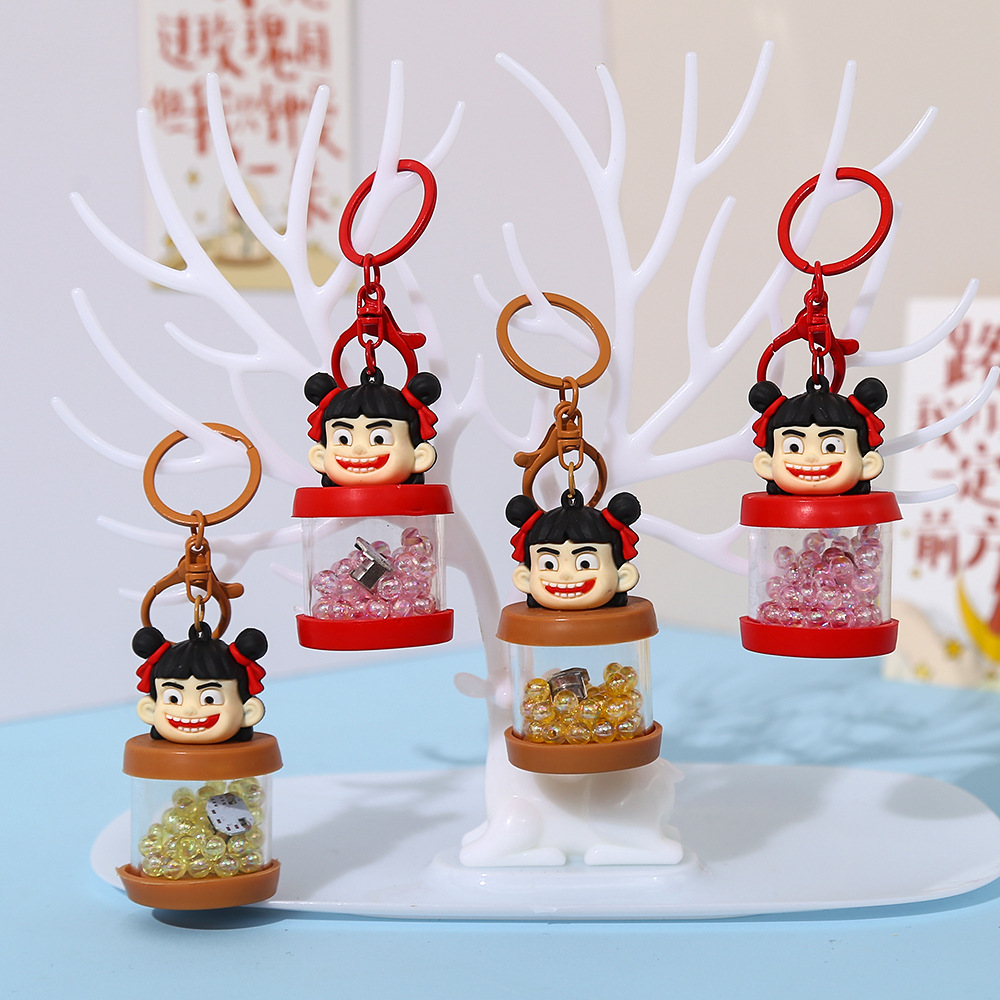 创意魔童哪吒闪灯摇摇乐钥匙扣精致可爱书包挂件地摊摆件礼品批发