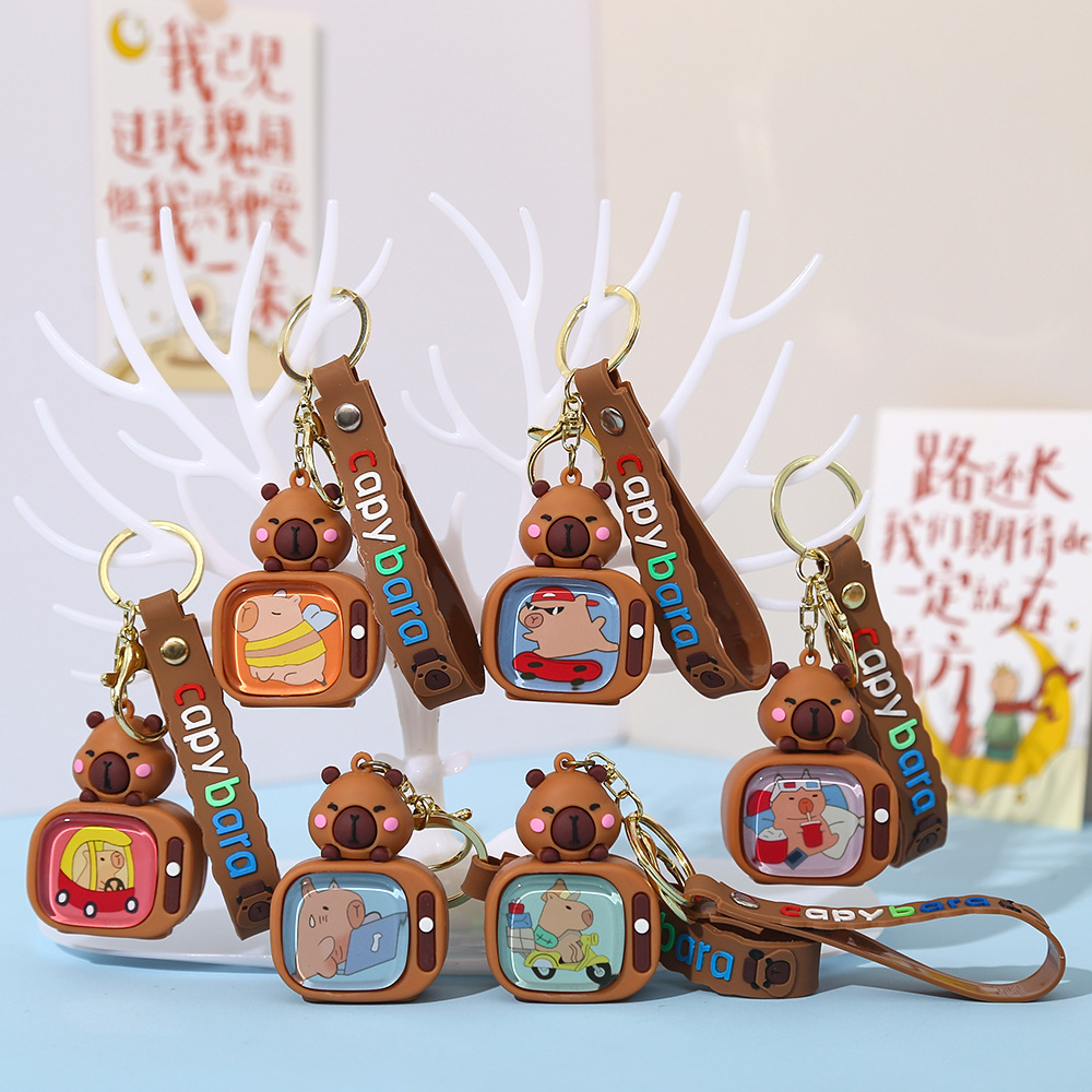 创意可爱卡皮巴拉发光电视机钥匙扣水豚小夜灯抓娃娃机挂饰小礼品