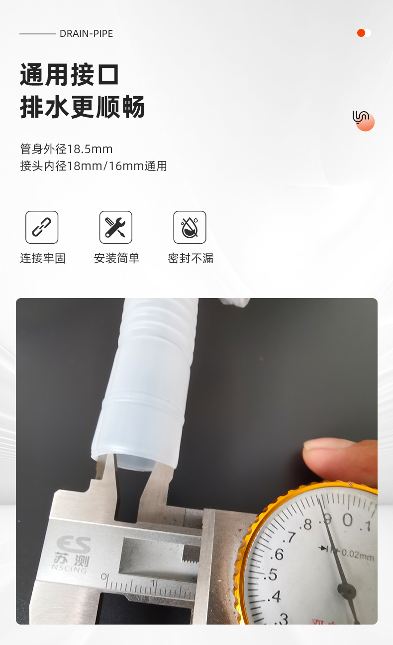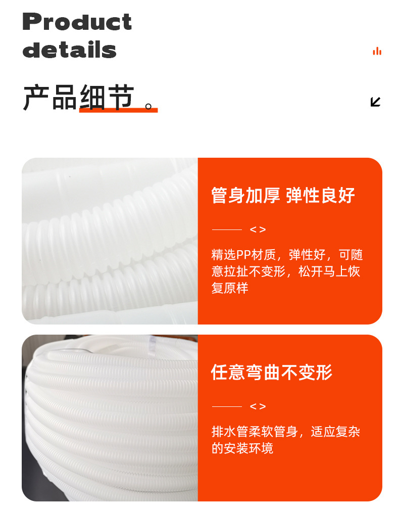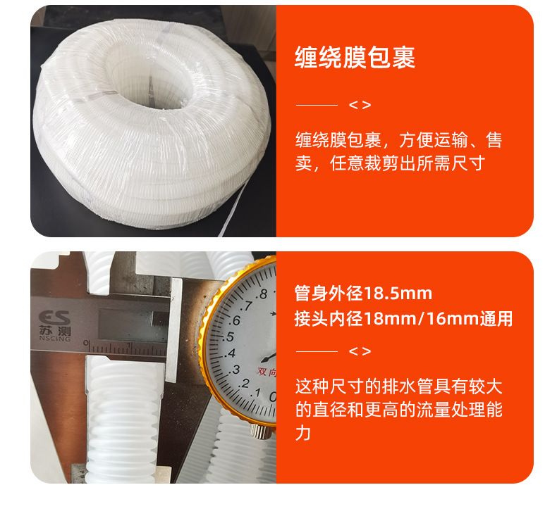 空调排水管全新PP料接头16/18MM通用空调外机滴水波纹延长塑料管