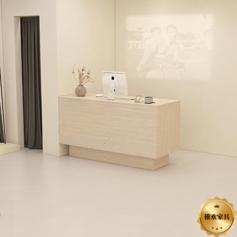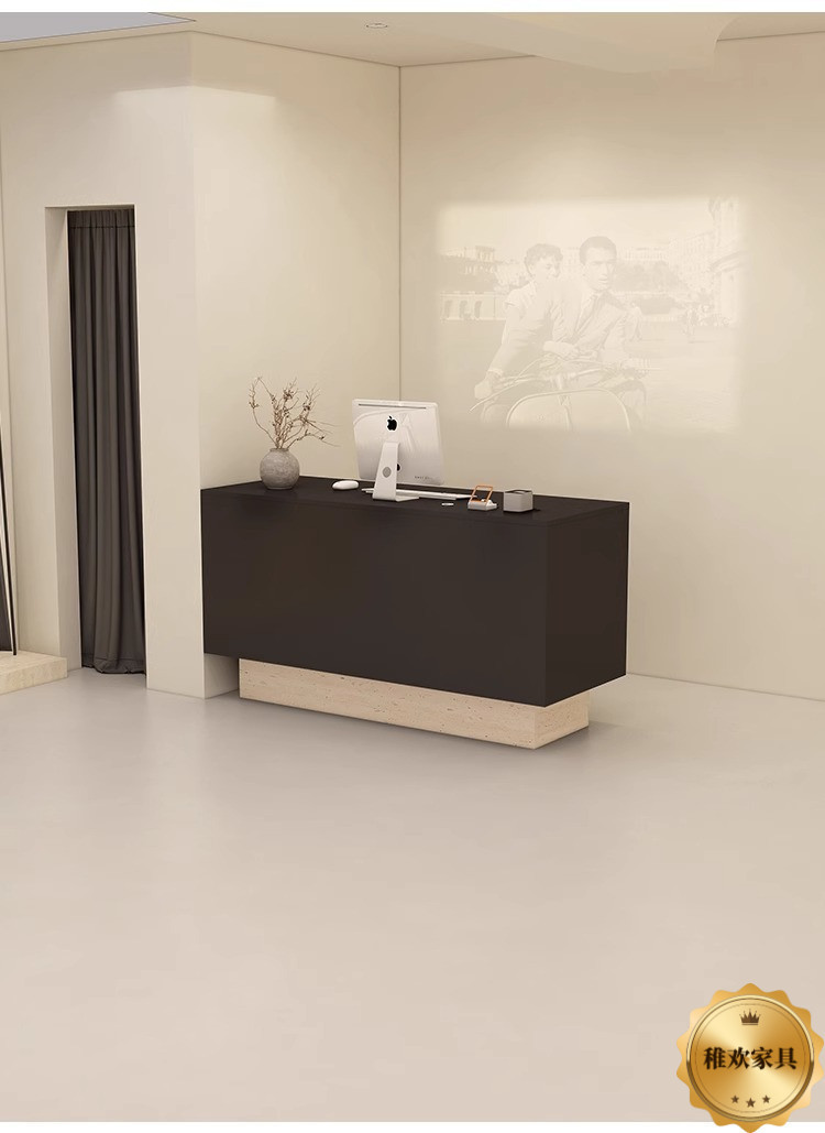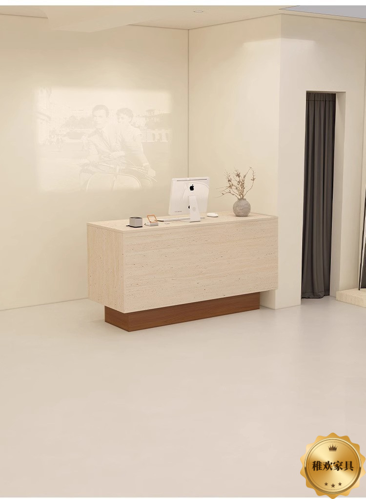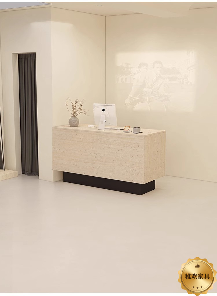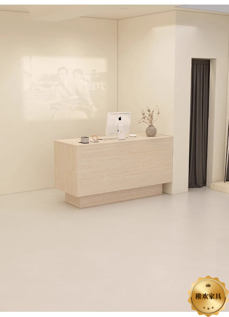 洞石纹收银台服装店女装店铺小型吧台桌带灯美发前台简约现代
