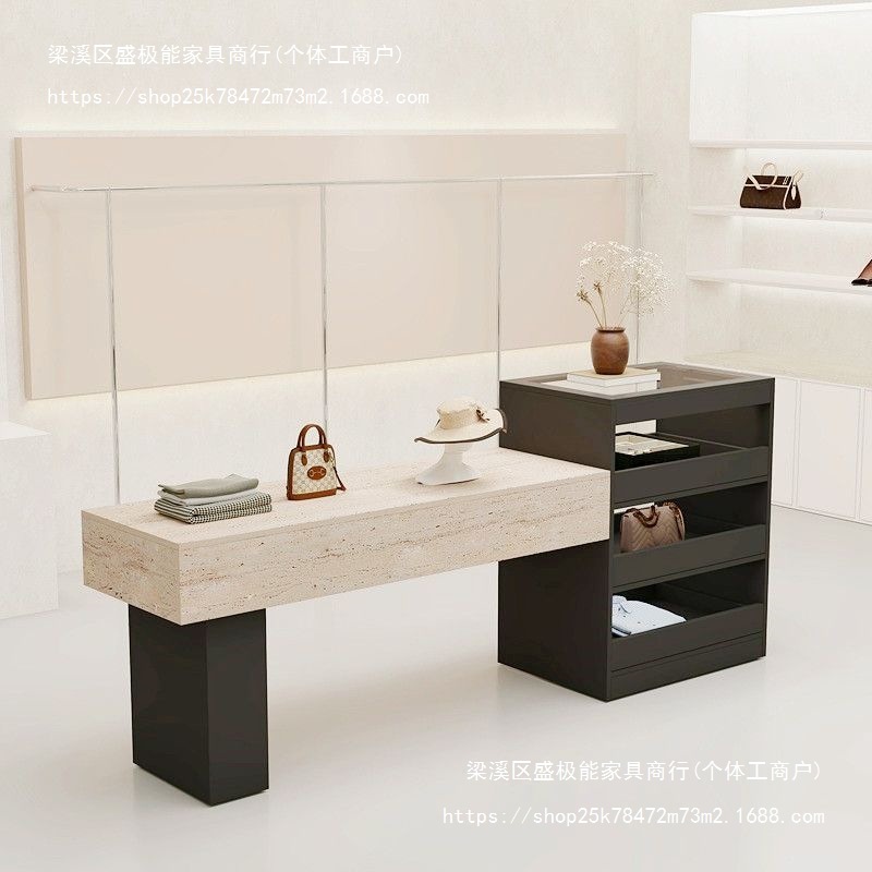 服装店中岛台展示台女装店铺中间流水简约现代摆放石纹展示桌鞋台