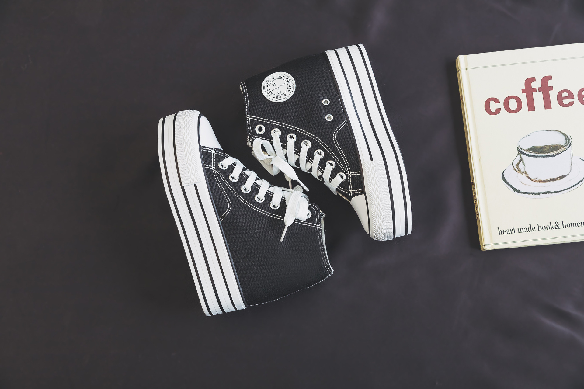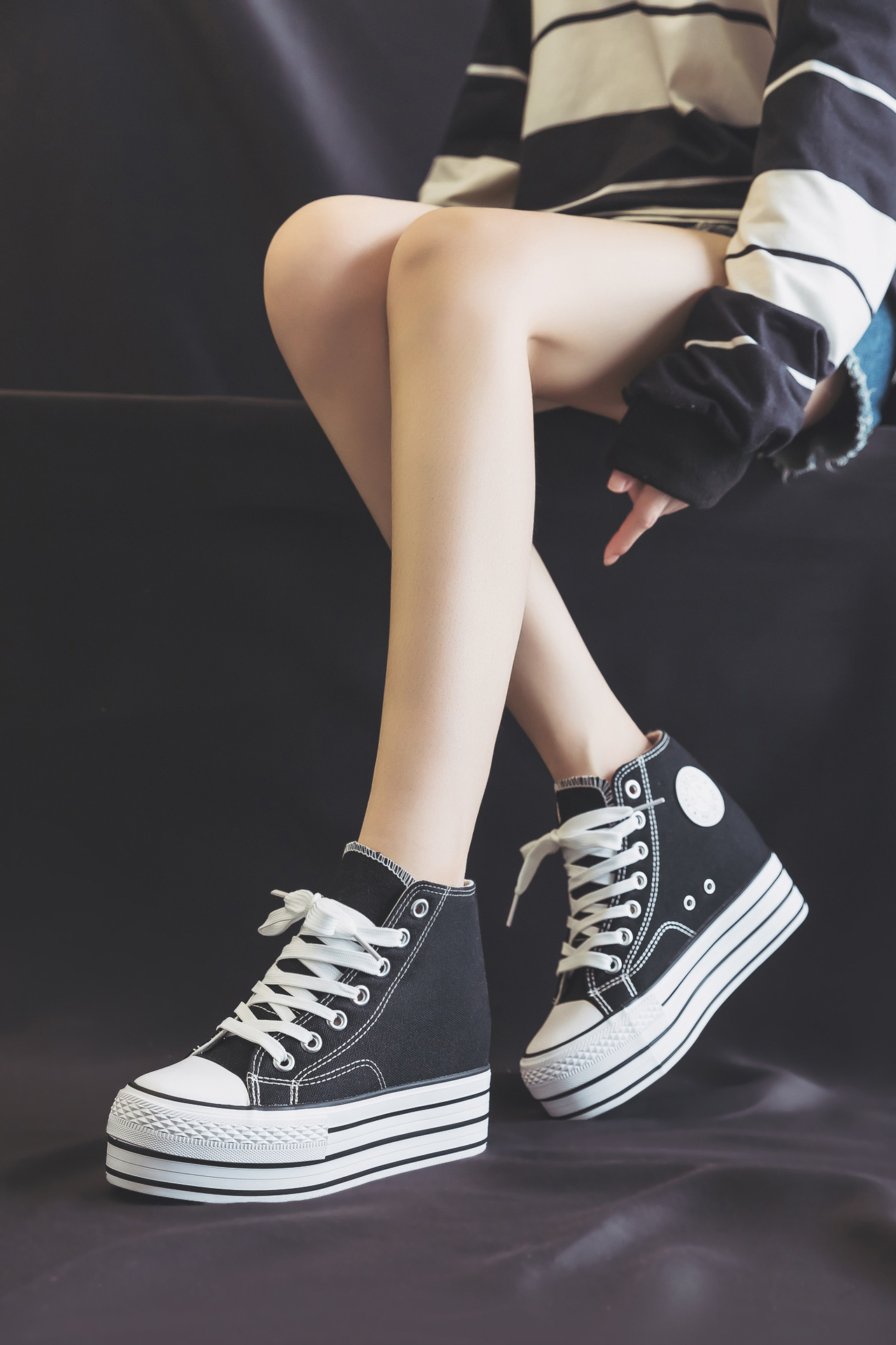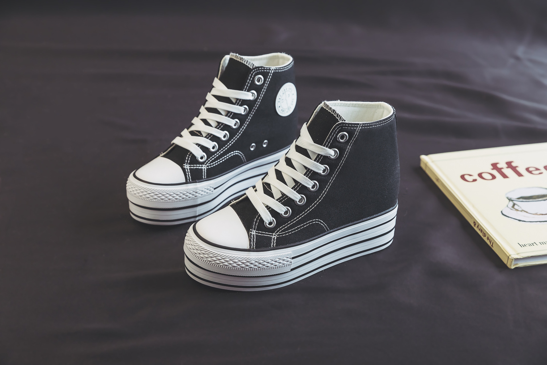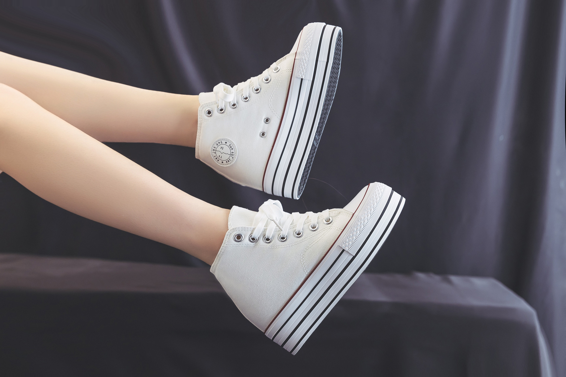 2025新款内增高8厘米帆布鞋百搭厚底高帮韩板鞋系带松糕女鞋6159