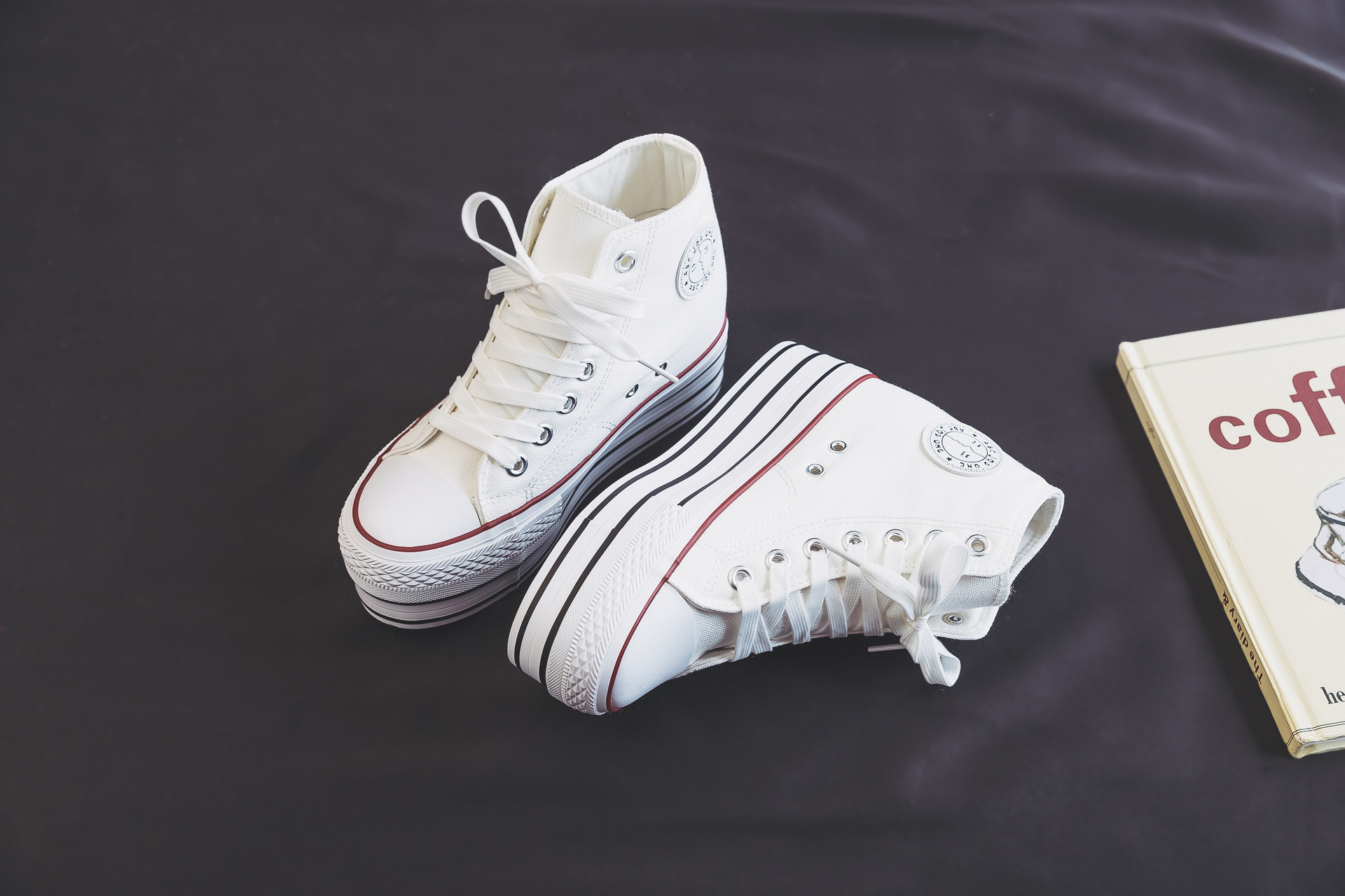 2025春季新款高帮帆布鞋女内增高松糕鞋子经典百搭厚底休闲鞋1311