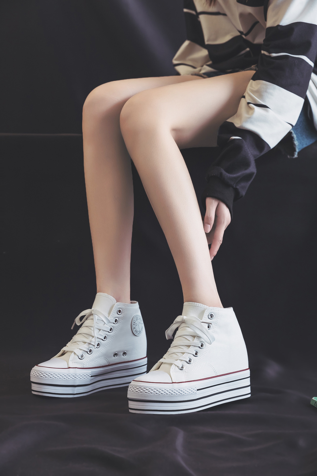 内增高9厘米帆布鞋女2025春季新款侧拉链板鞋百搭厚底松糕鞋788