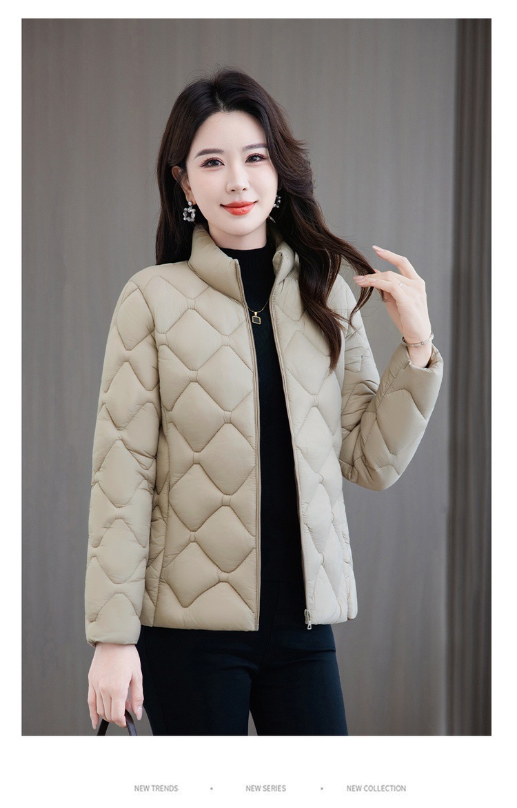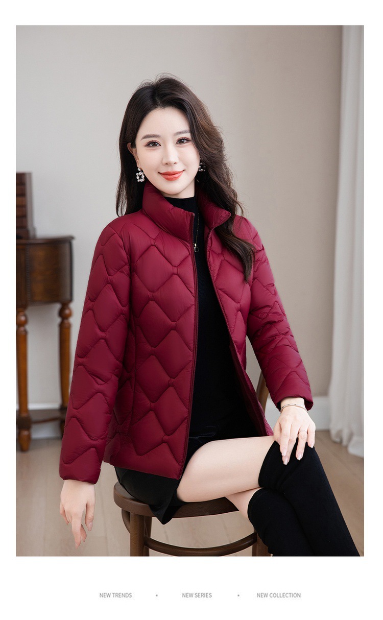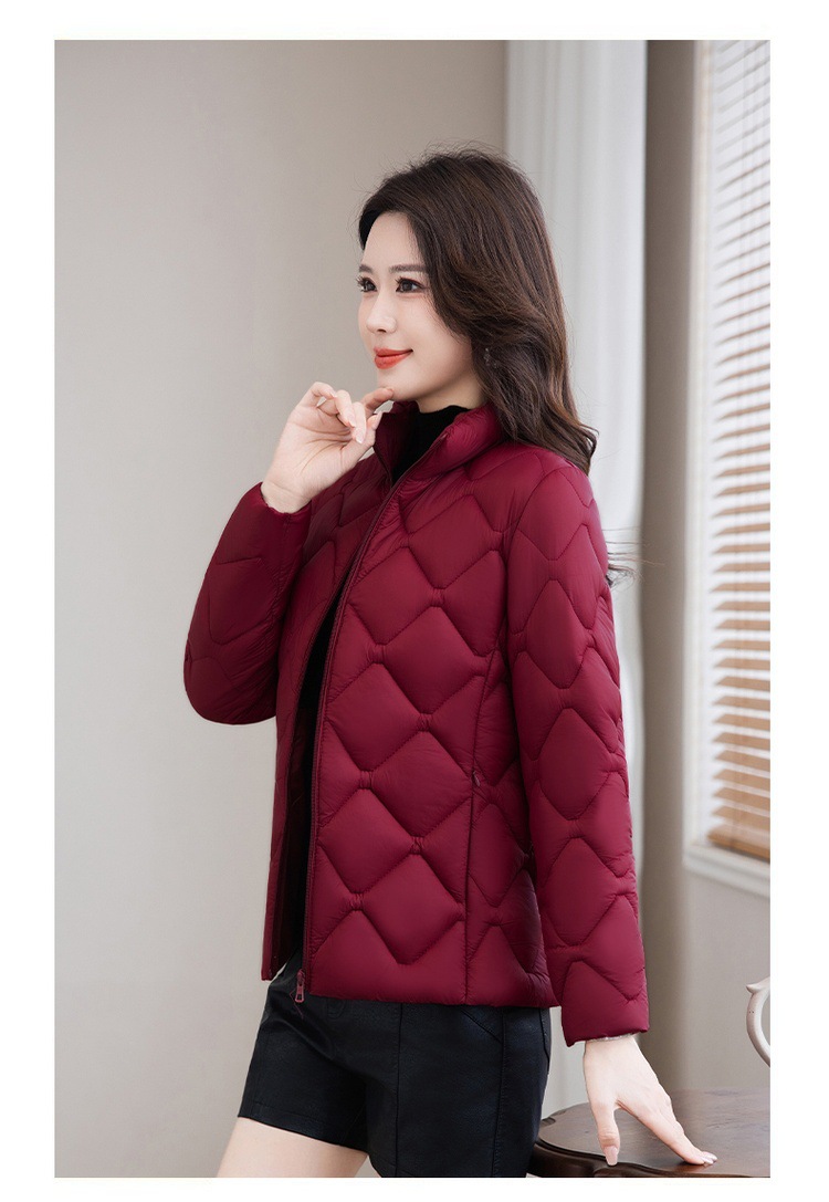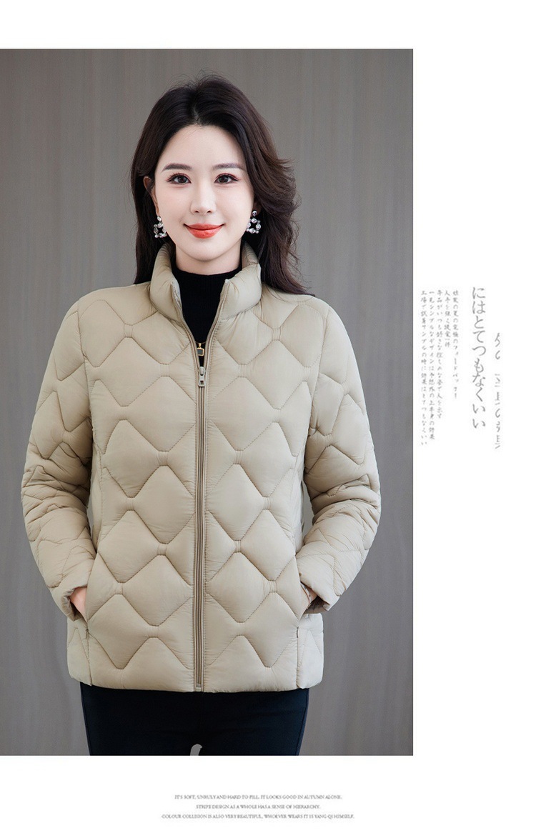 冬用厚手コート、ショート丈中年女性向けスタンドカラー中綿ジャケット、冬用ママ向け防寒コート、流行の防寒着