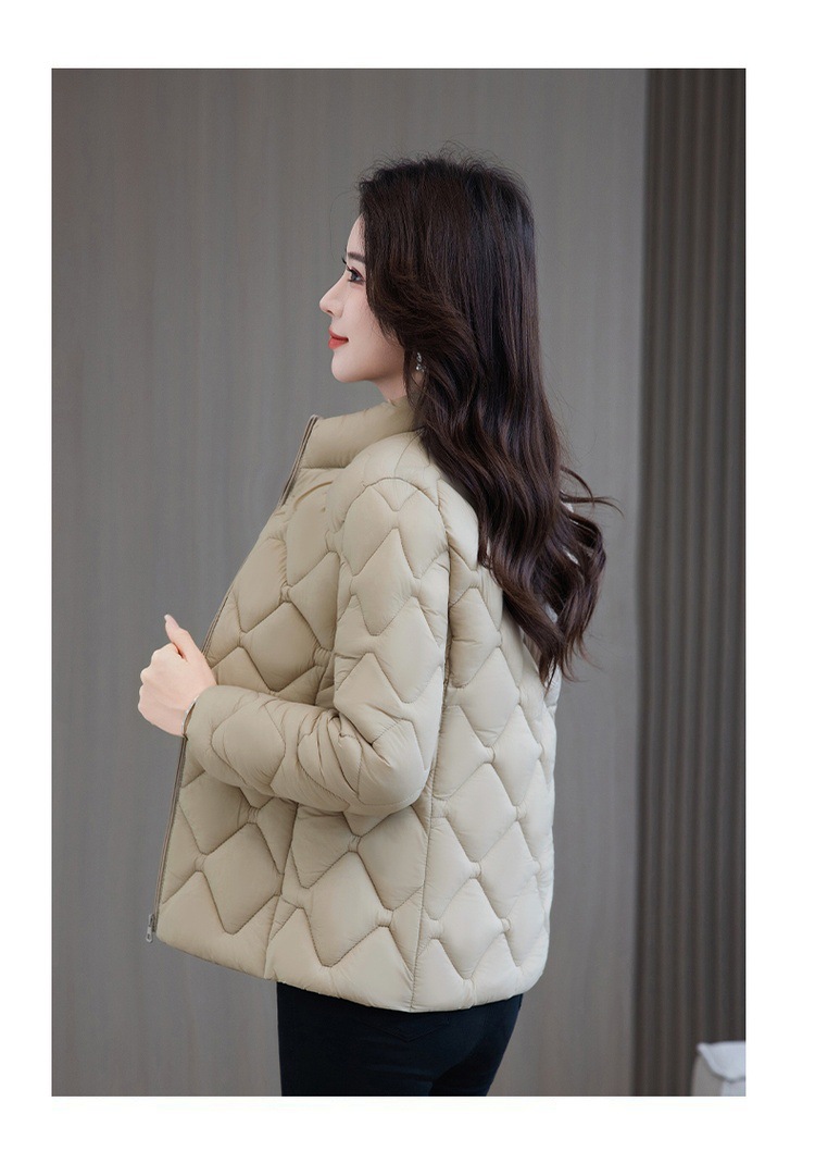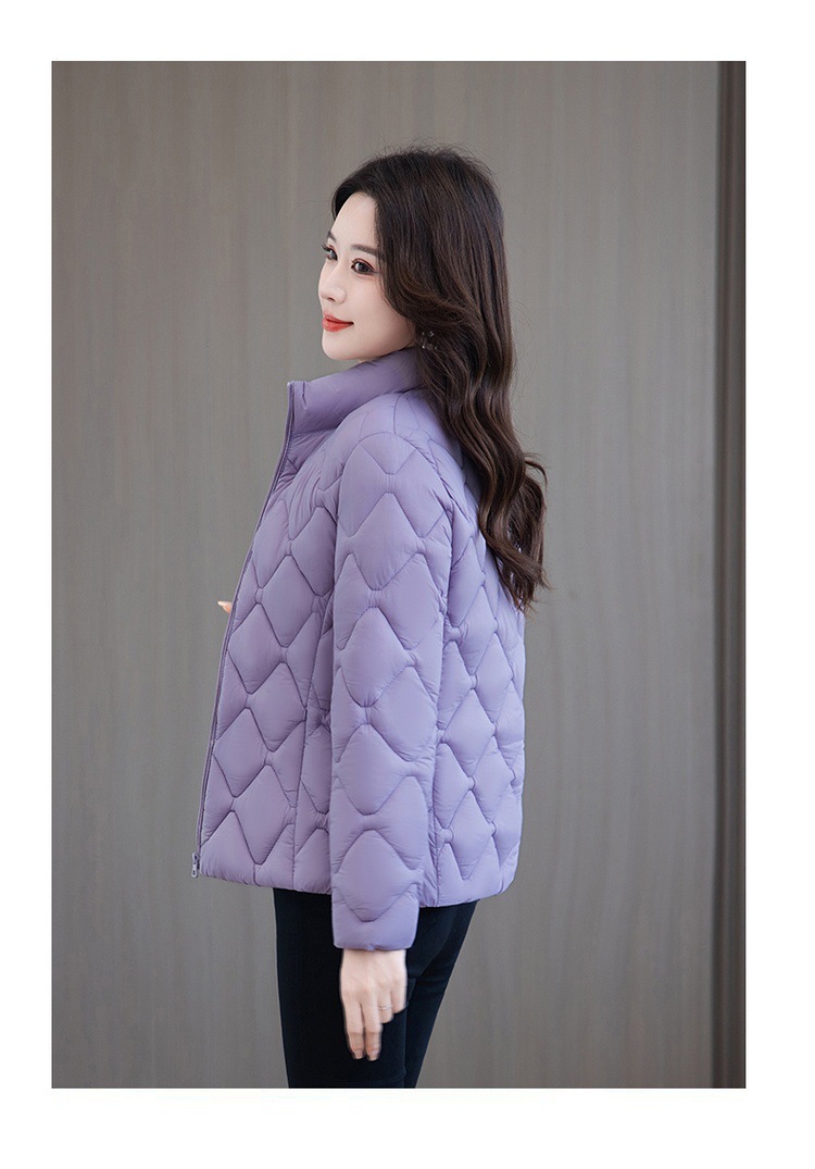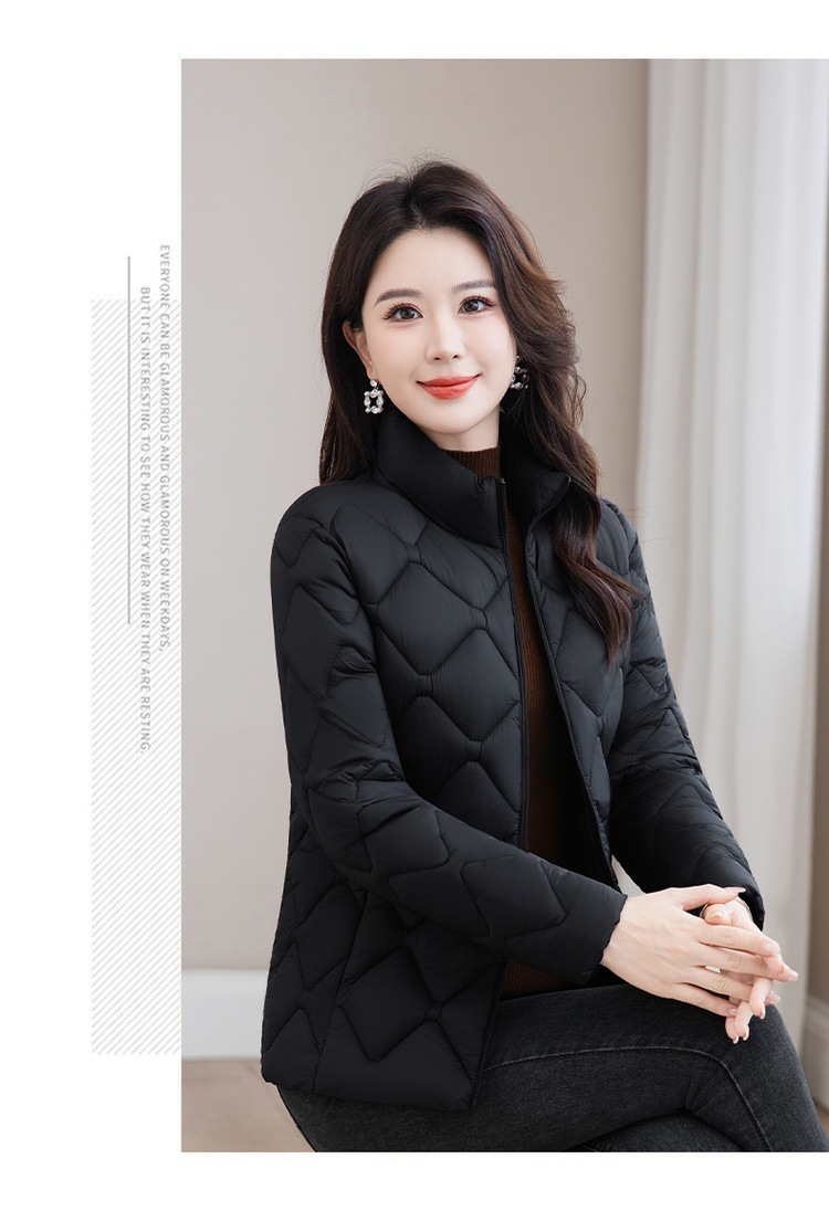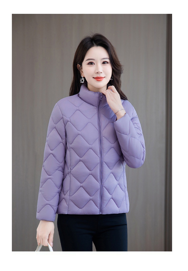 冬用厚手コート、ショート丈中年女性向けスタンドカラー中綿ジャケット、冬用ママ向け防寒コート、流行の防寒着