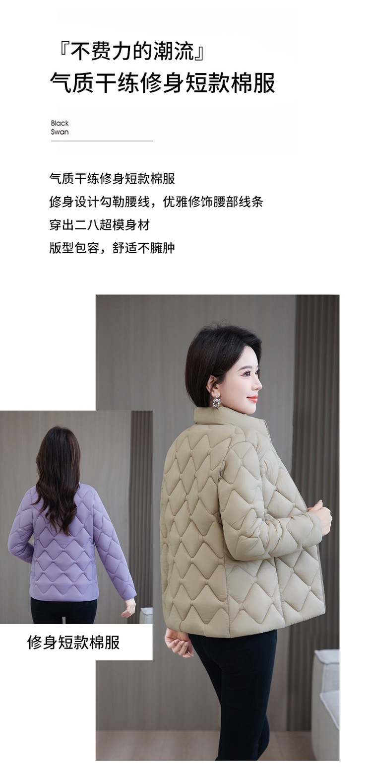 棉衣女短款显瘦洋气大码时尚修身羽绒棉服妈妈装2025新款冬季外套