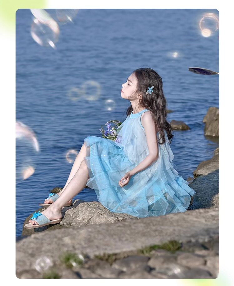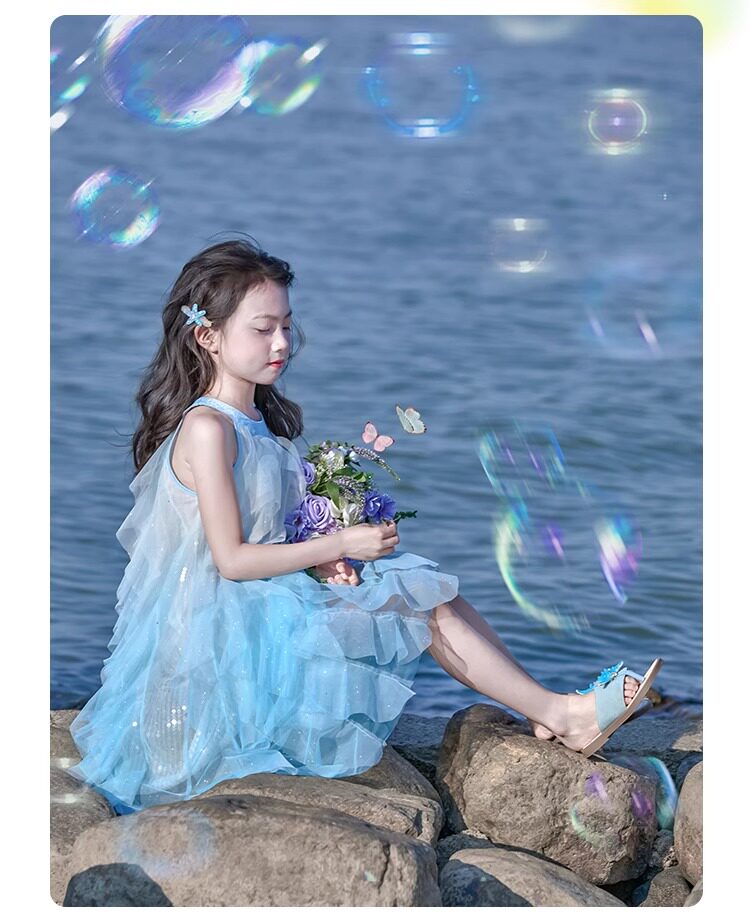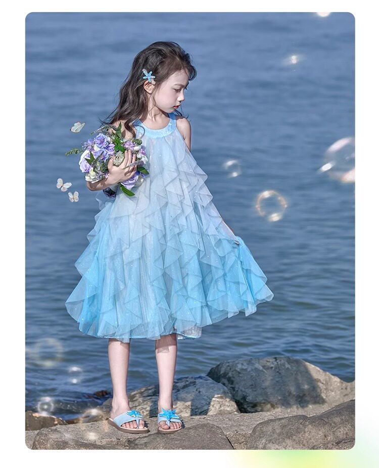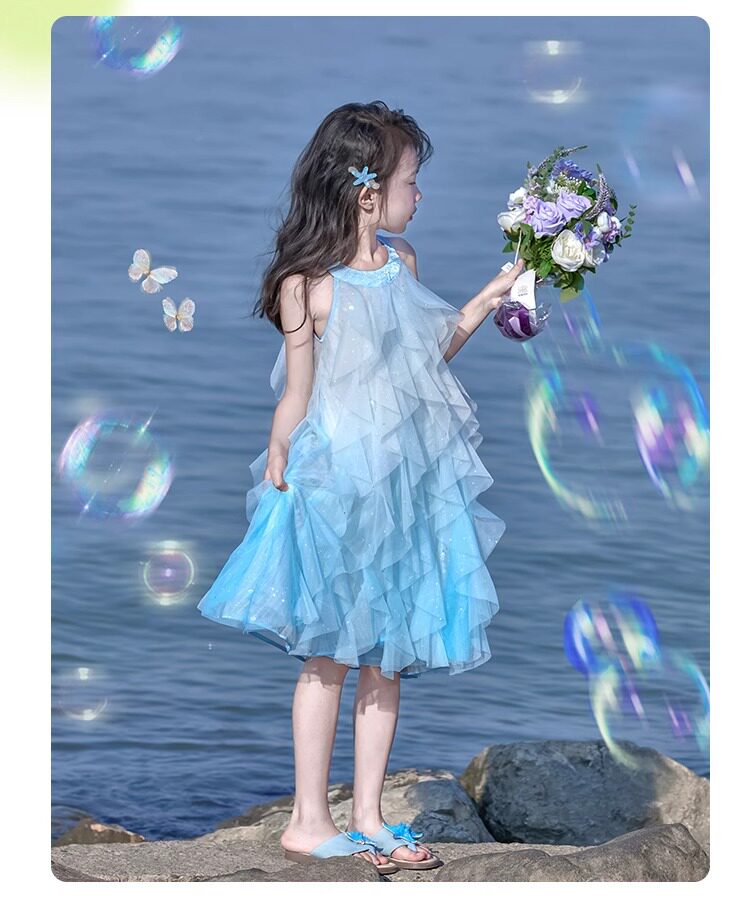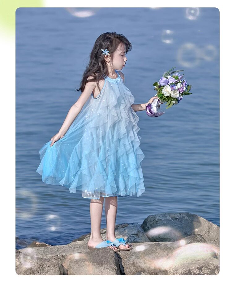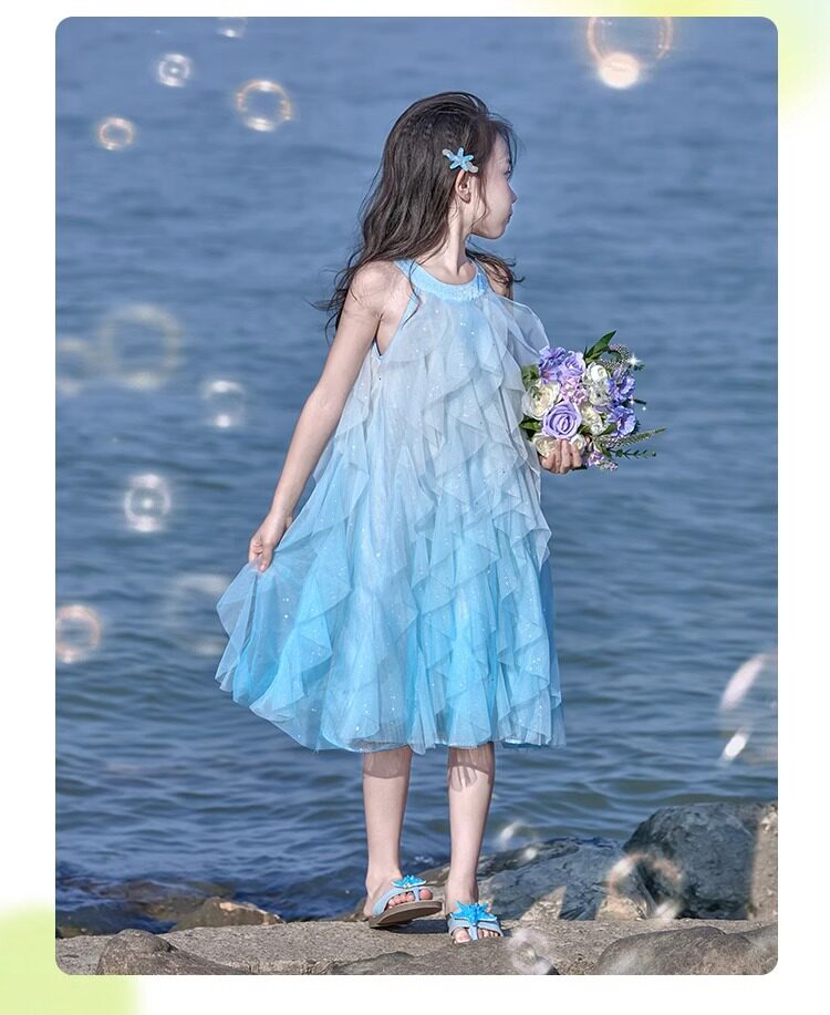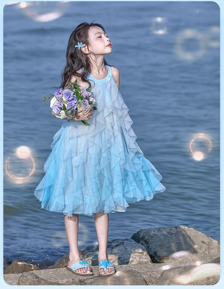 女童挂脖连衣裙5新甜美沙滩裙儿童吊带裙小女孩网纱公主裙夏