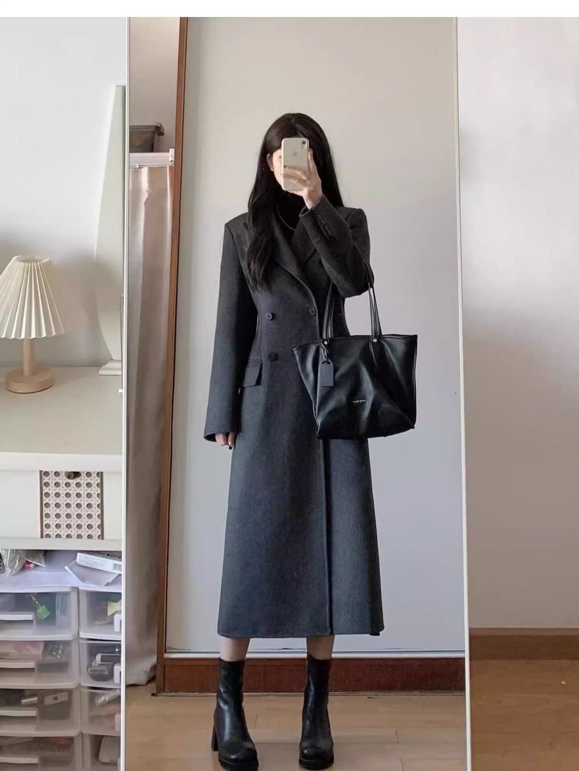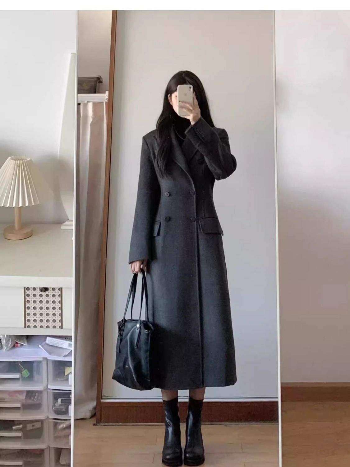 中长款高个子灰色正肩显瘦呢子大衣女2025秋冬季新款毛呢外套潮
