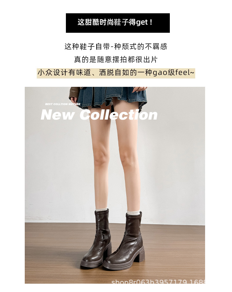 赵露思同款·内增高马丁靴女英伦2025新款黑色高跟小个子堆堆短靴