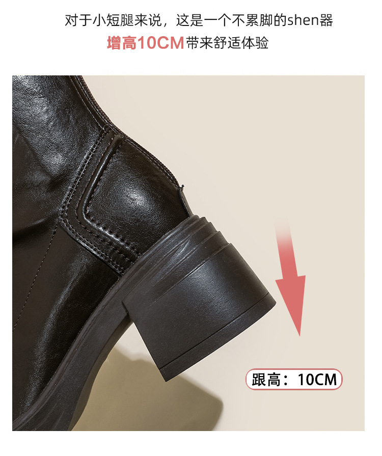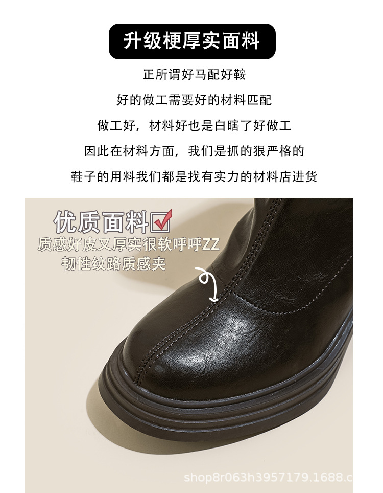 内に高くなった騎士靴2023秋冬の新型長筒騎士靴の太さと丸い頭に足の長いタバコの筒のやせた靴を合わせます。