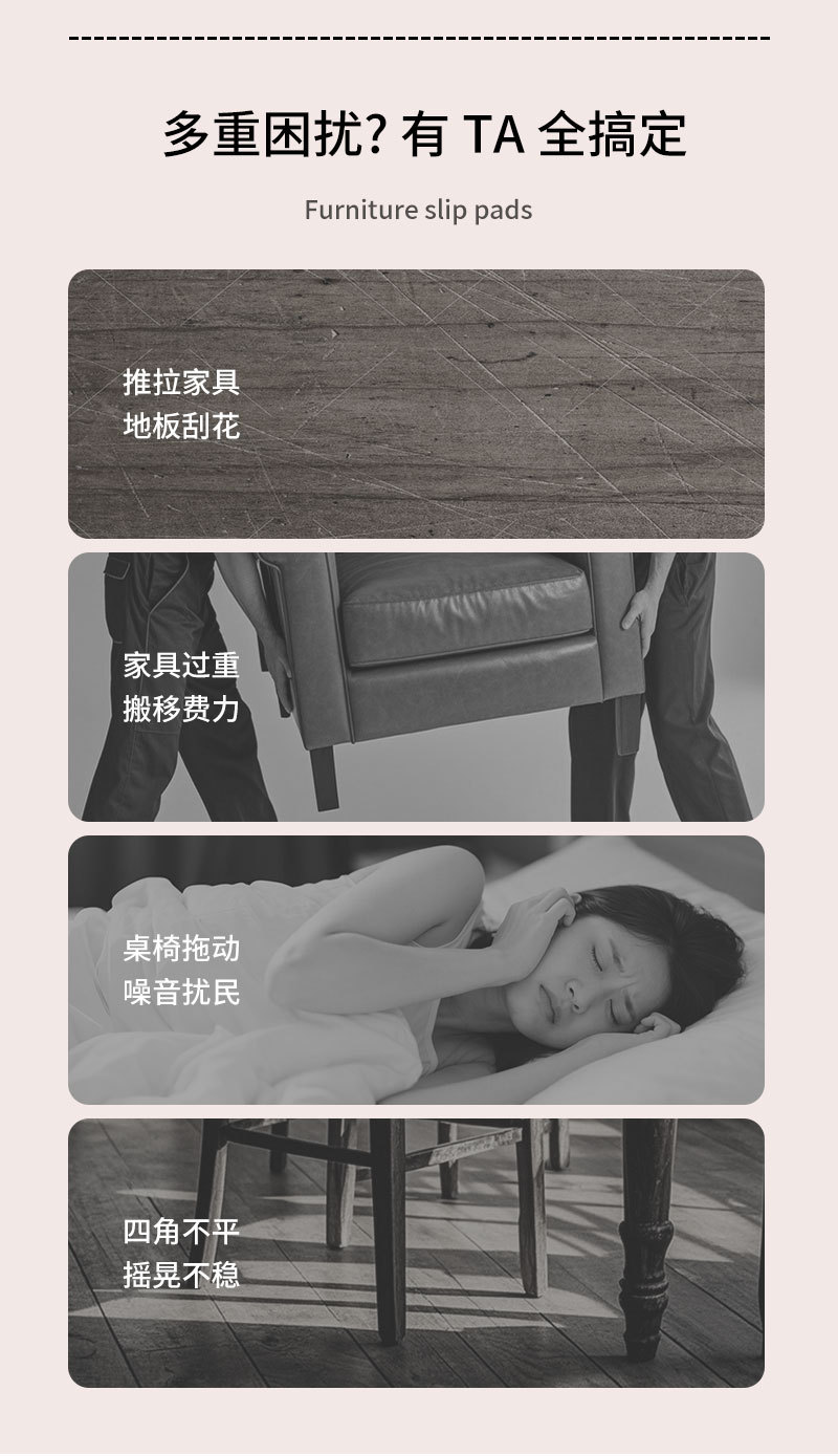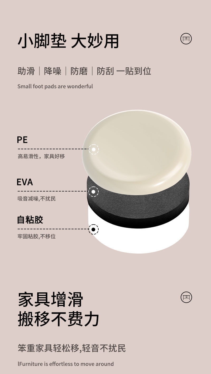 自粘PE桌椅子滑行脚垫家具板凳移动垫防刮耐磨凳子垫静音桌椅脚垫