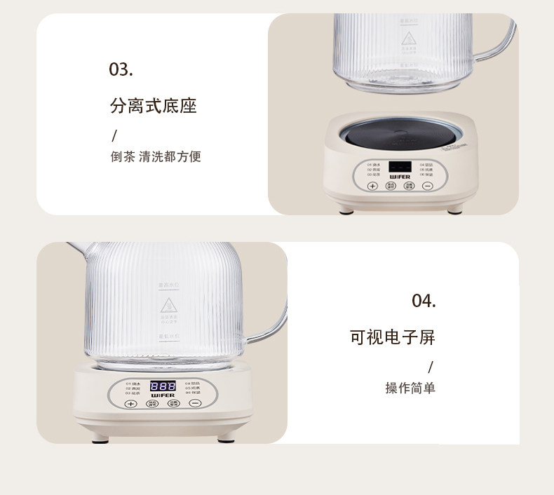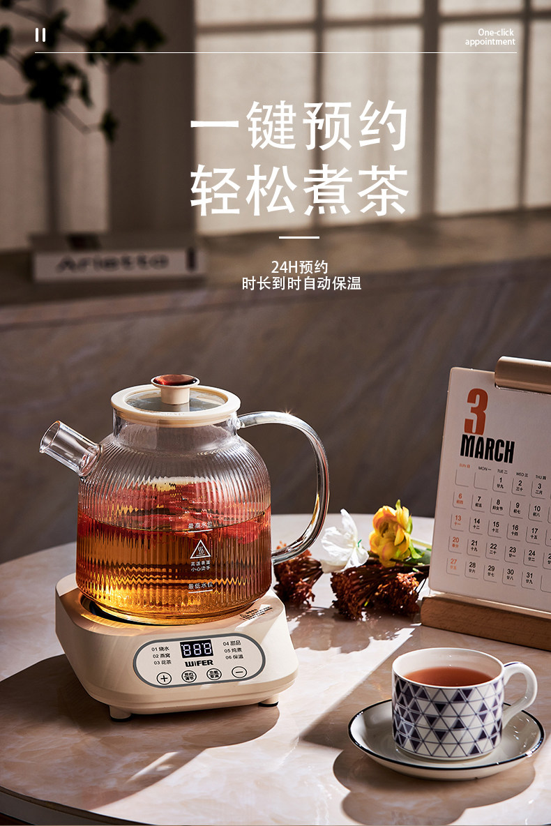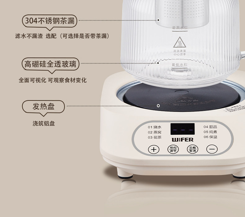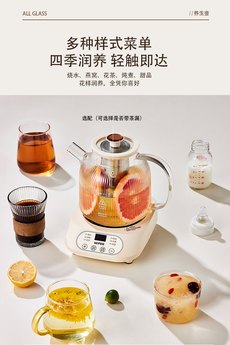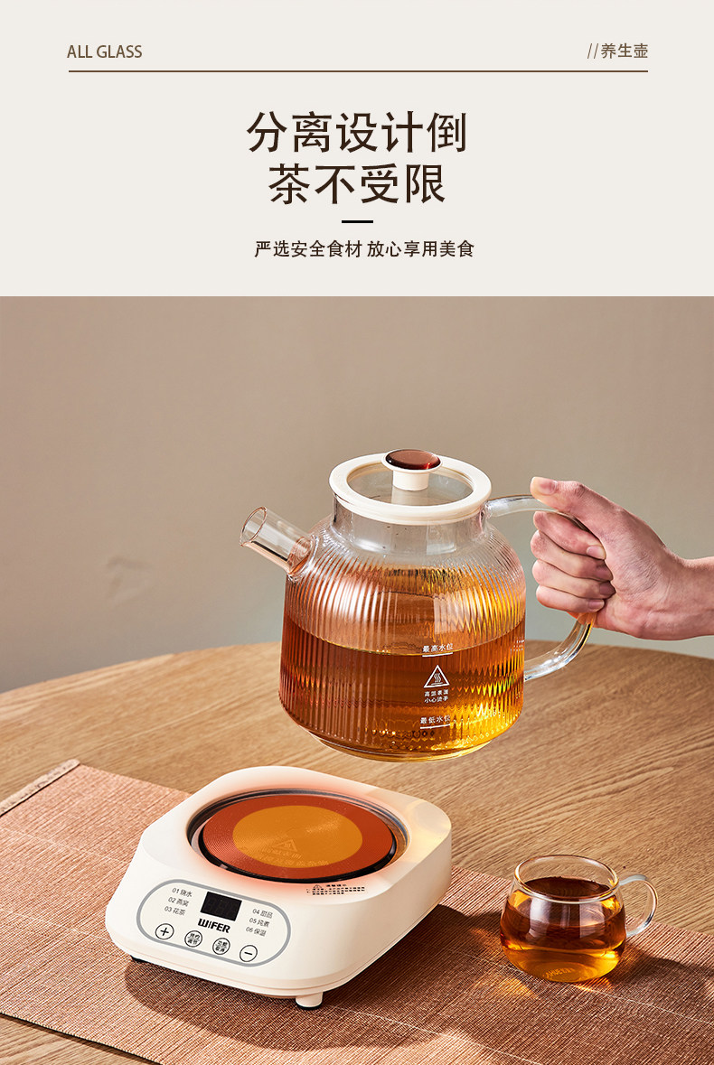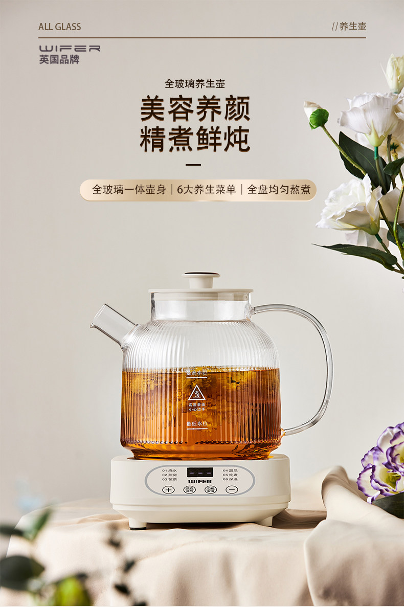 好夫人玻璃保健恒温养生壶家用多功能办公室烧水壶花茶壶炖煮分体