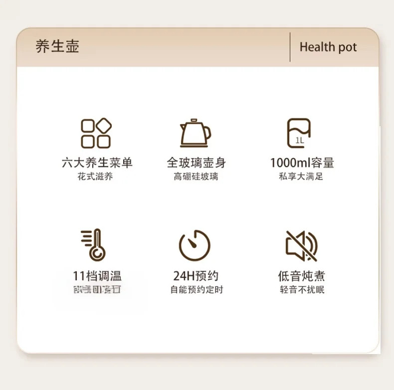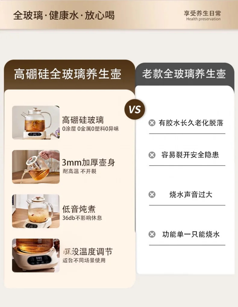 グッドファミリー家庭用全自動健康ポット、ティーメーカー、恒温ポット、シチューカップ、ガラス多機能接着剤不使用ケトル