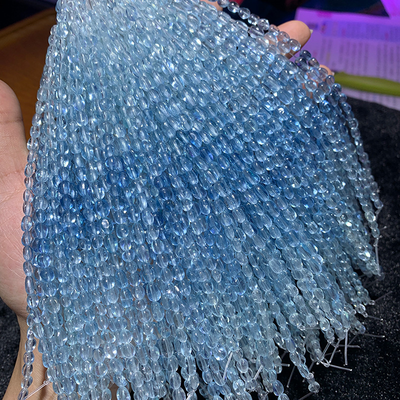 渐变海蓝宝随型长链半成品 diy串珠手链配饰水晶不规则糖豆散珠