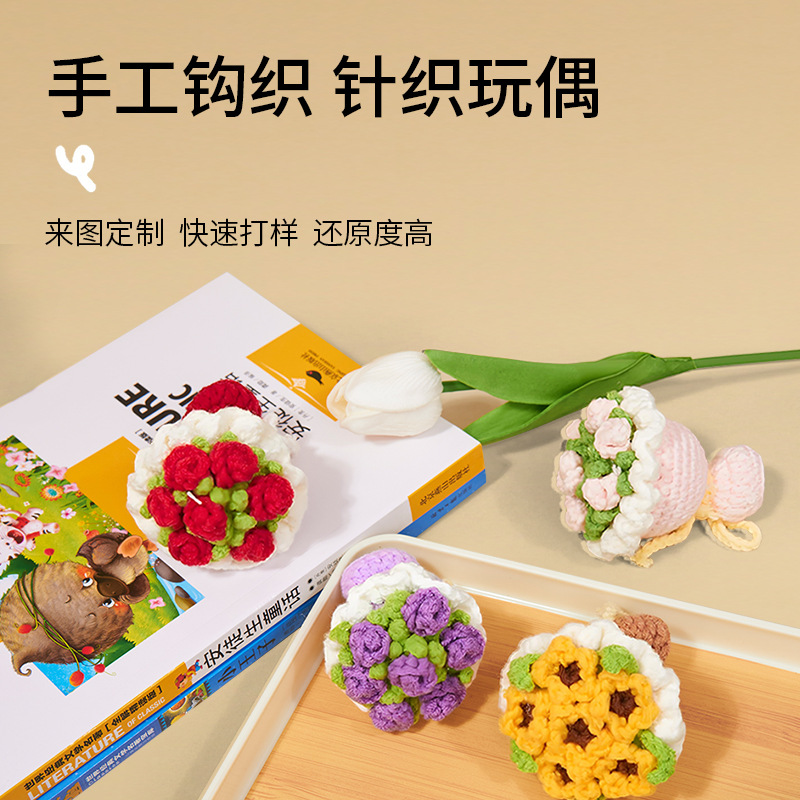 かわいい DIY 手作りウールの花の花束クリエイティブバレンタインデー教師の日の花束ギフトミニかぎ針編みの装身具