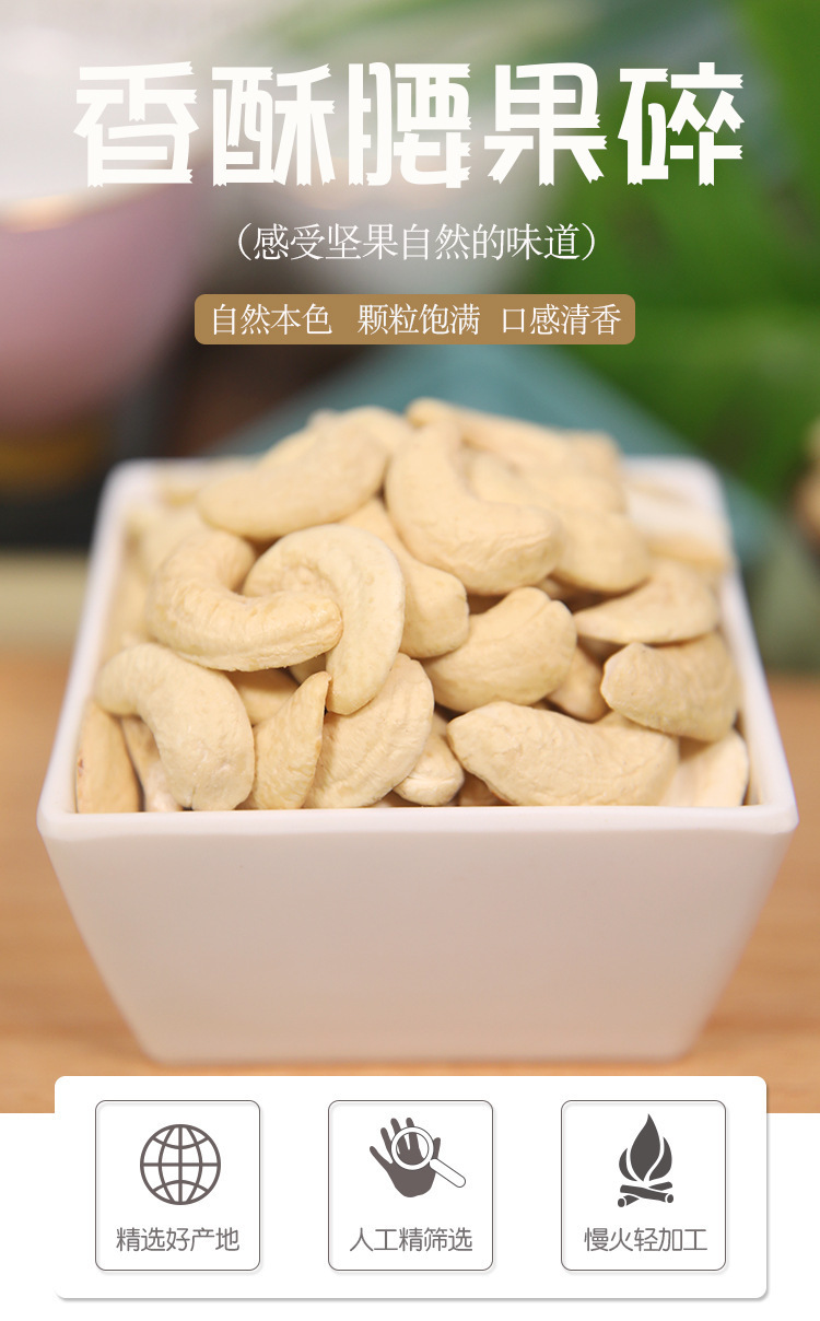 新货越南原味生腰果碎仁生的坚果碎烘焙原料真空新鲜碎的开边腰果