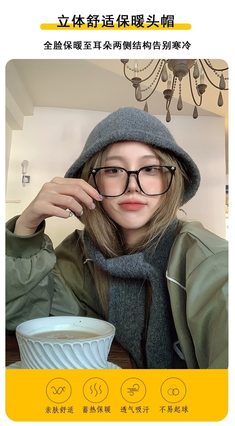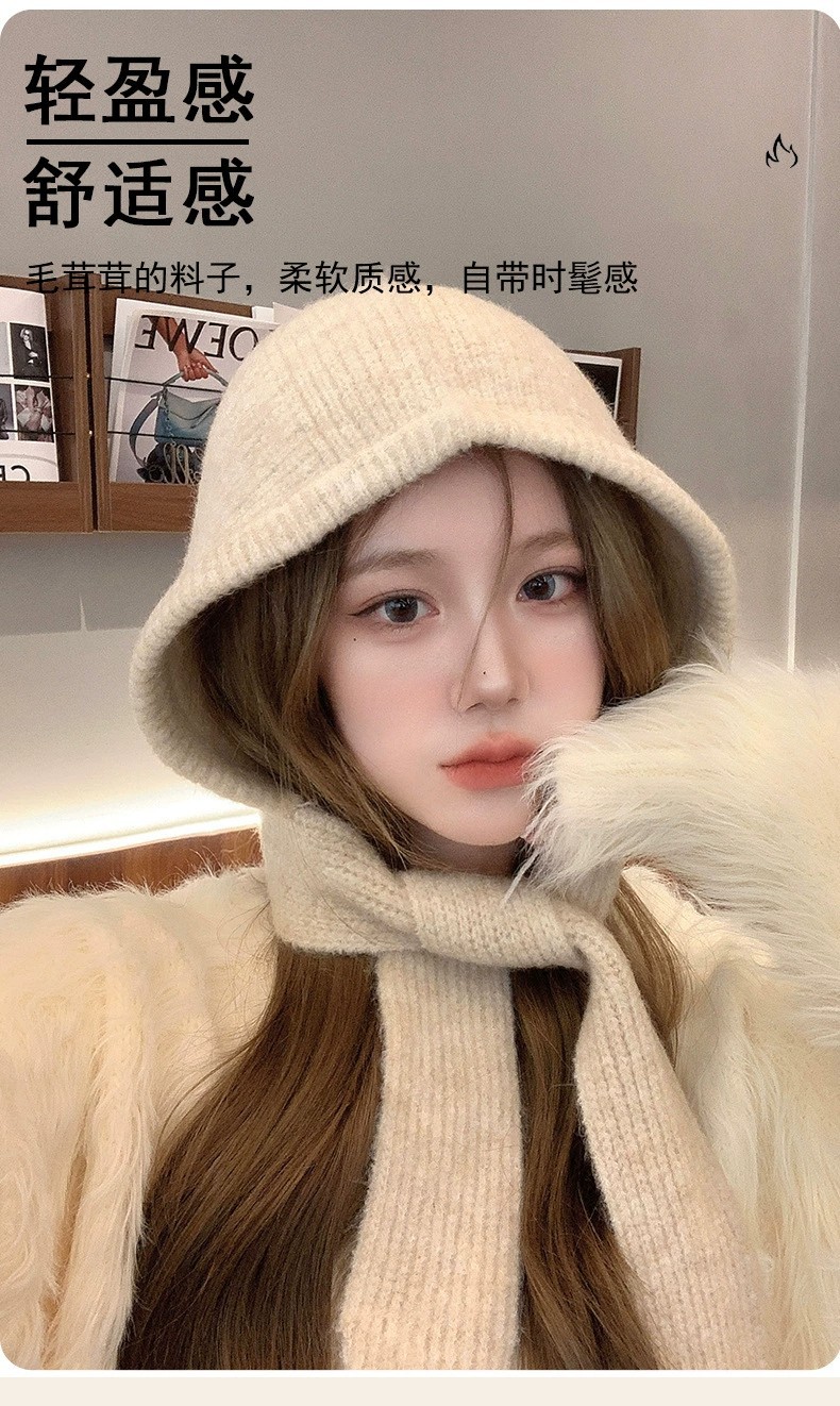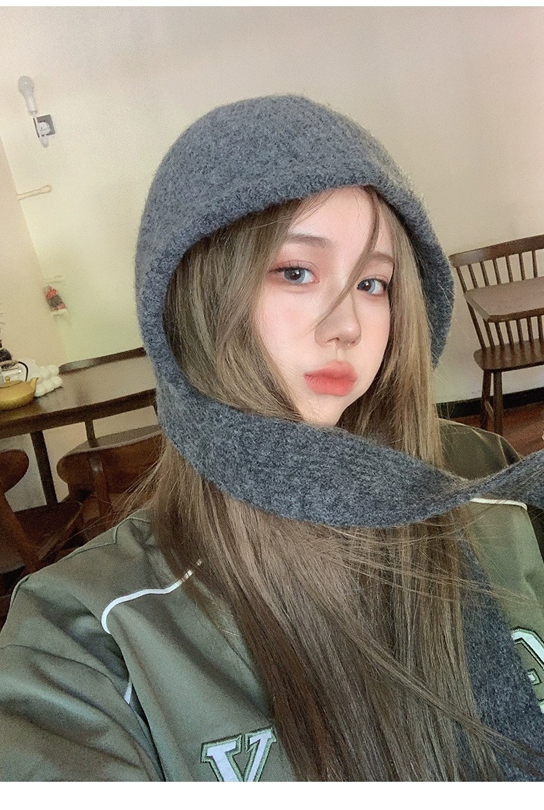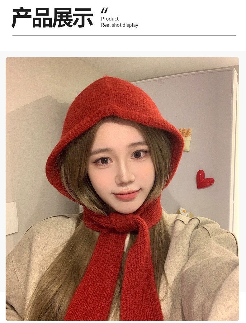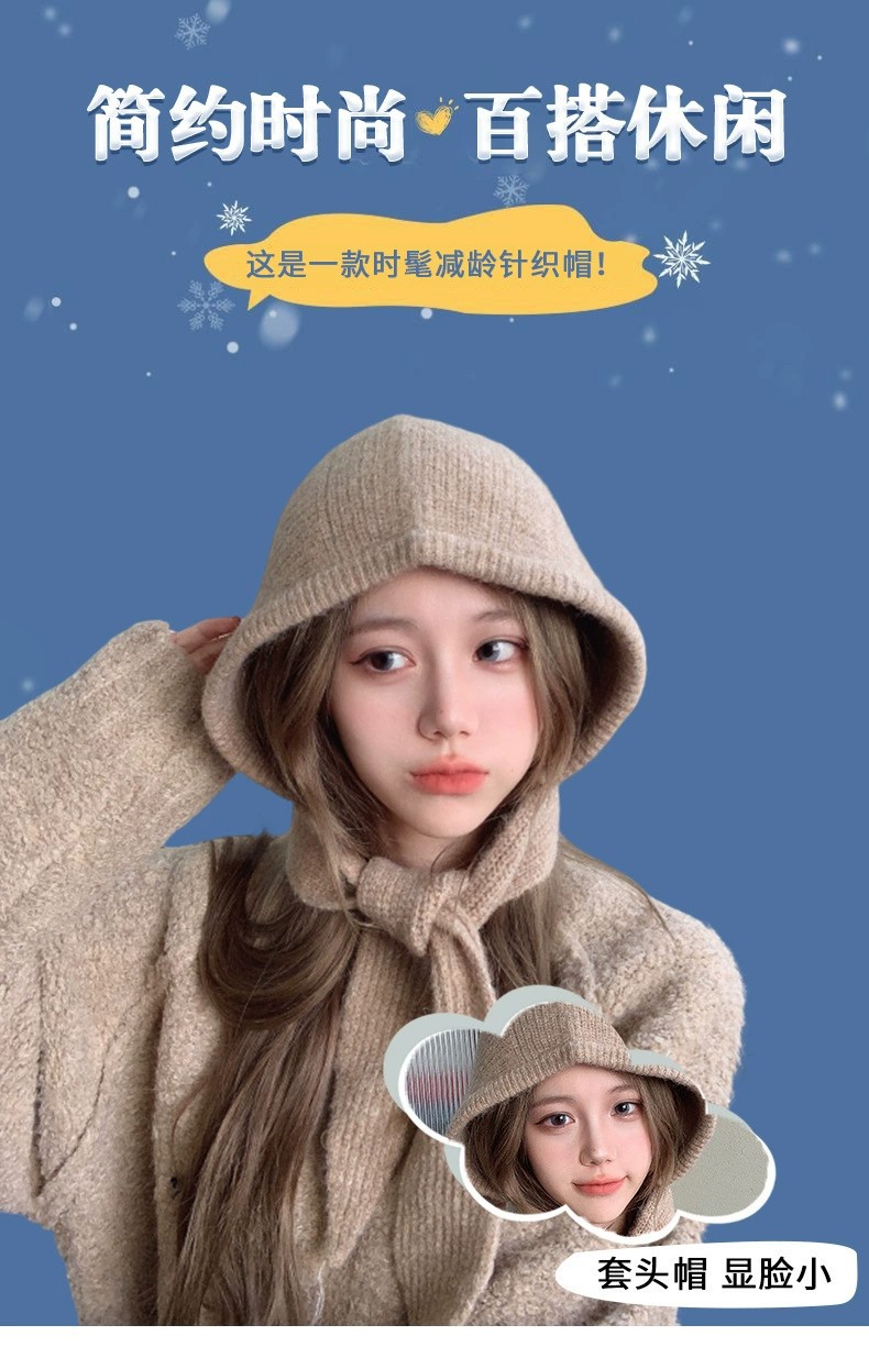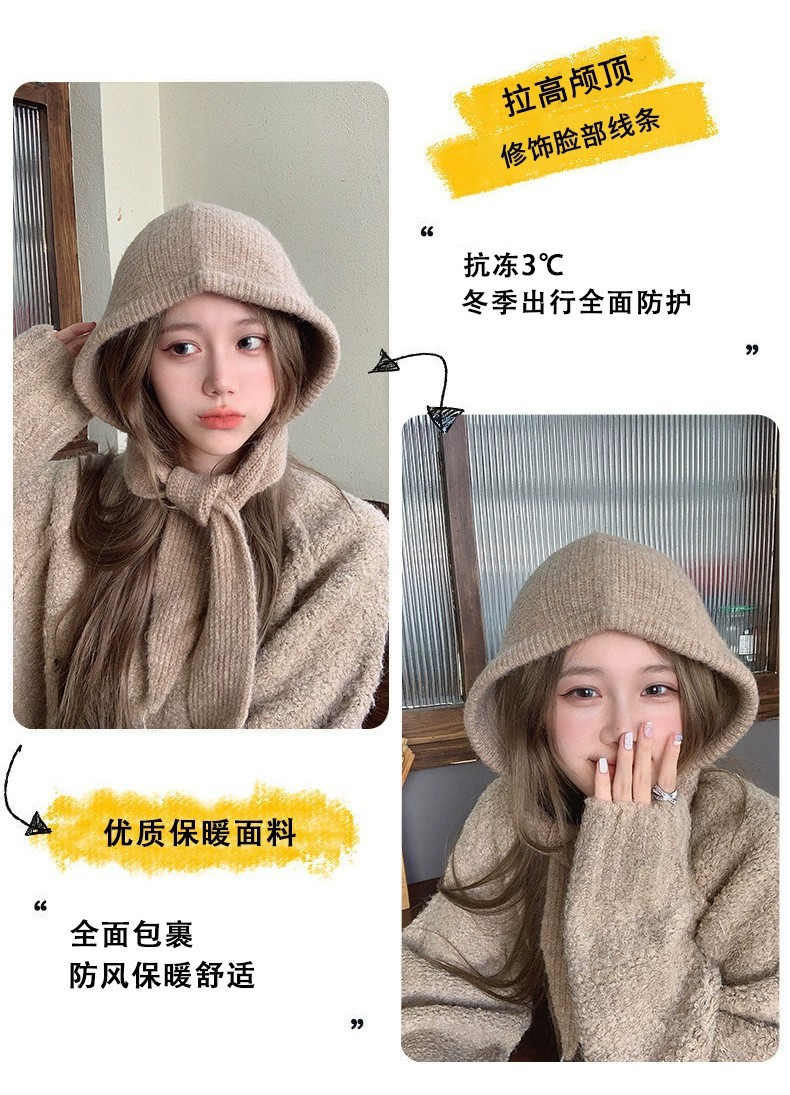 网红针织小红帽保暖加厚帽子围脖一体防寒毛线帽女巴拉克拉法帽