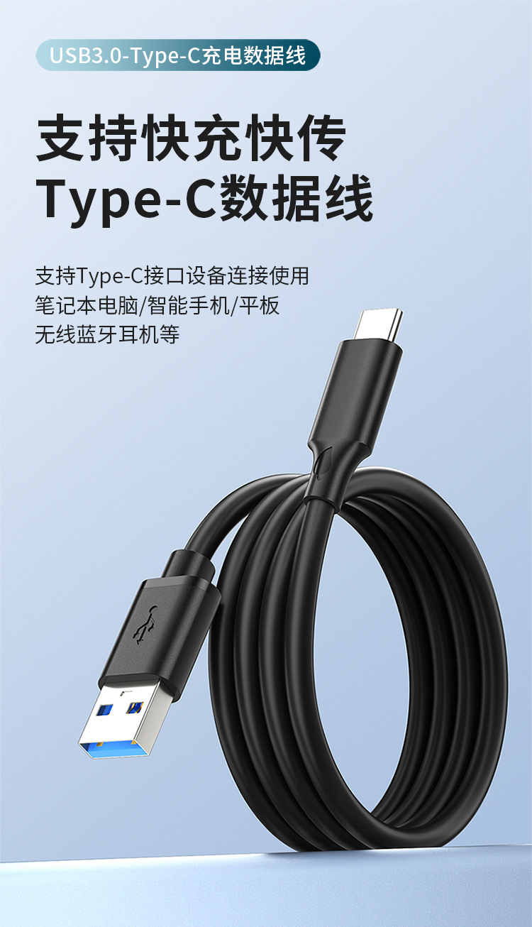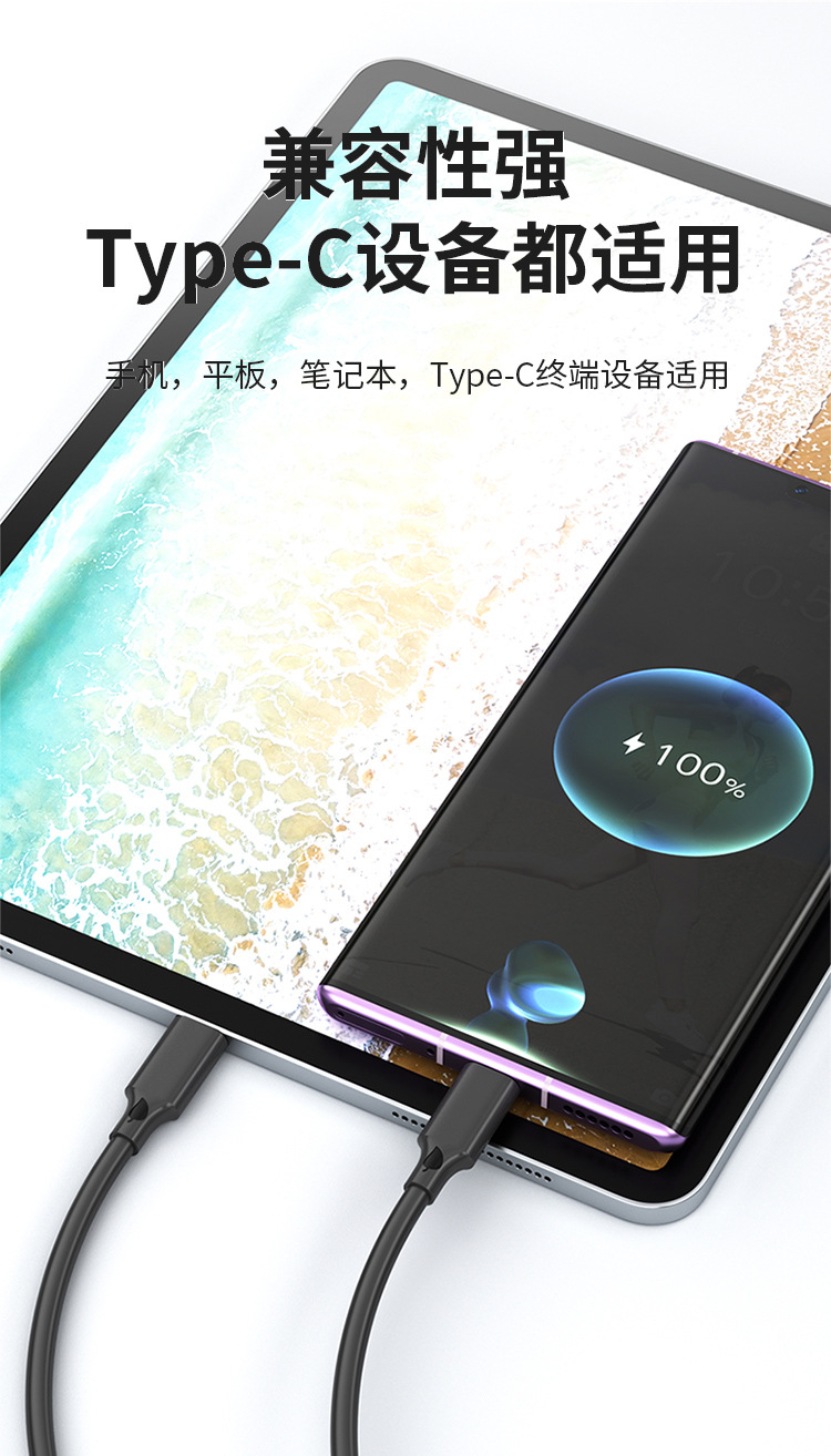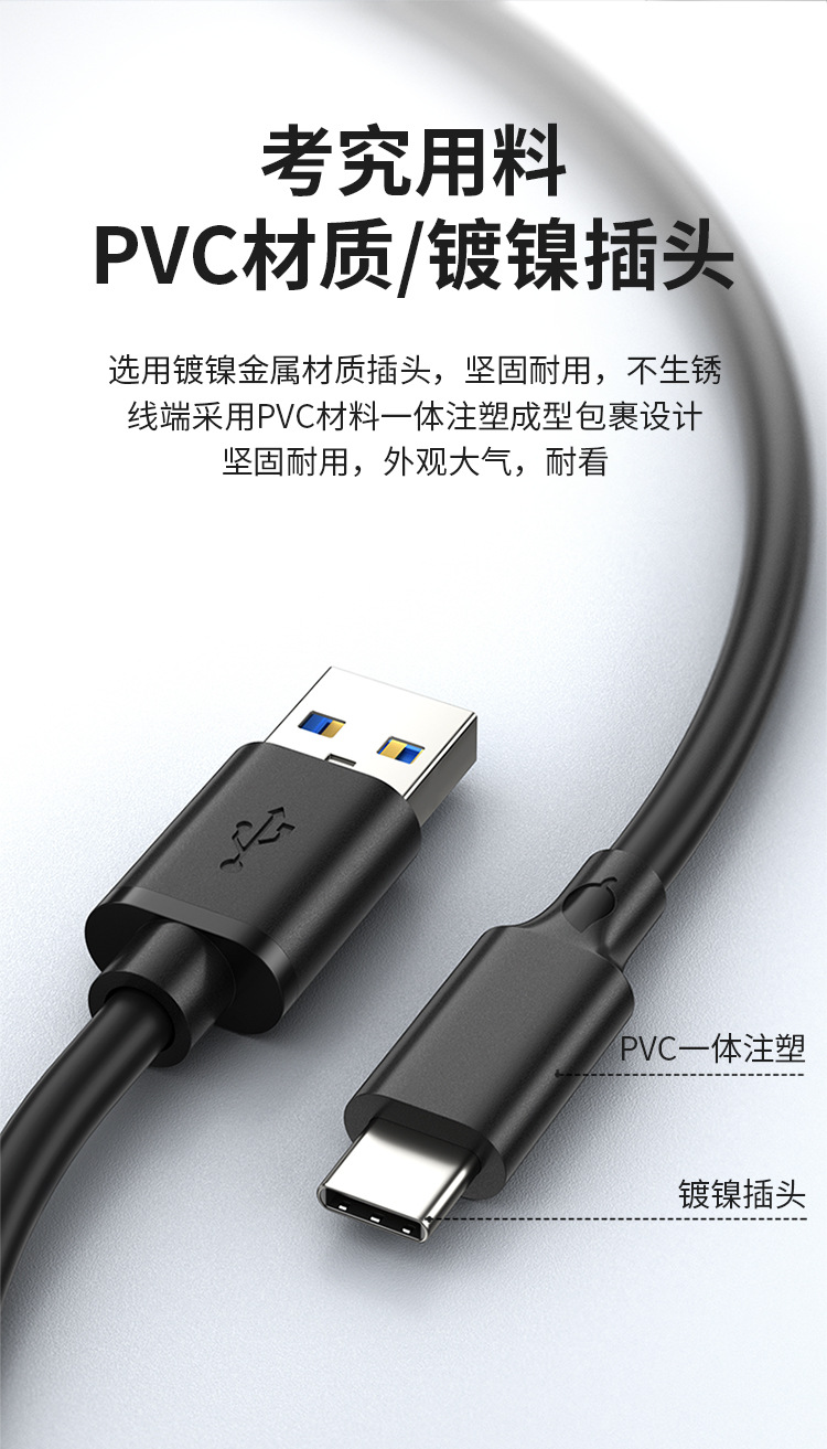 type-c数据线usb3.0转TypeC充电线10Gbps硬盘线3A60WPD手机快充线