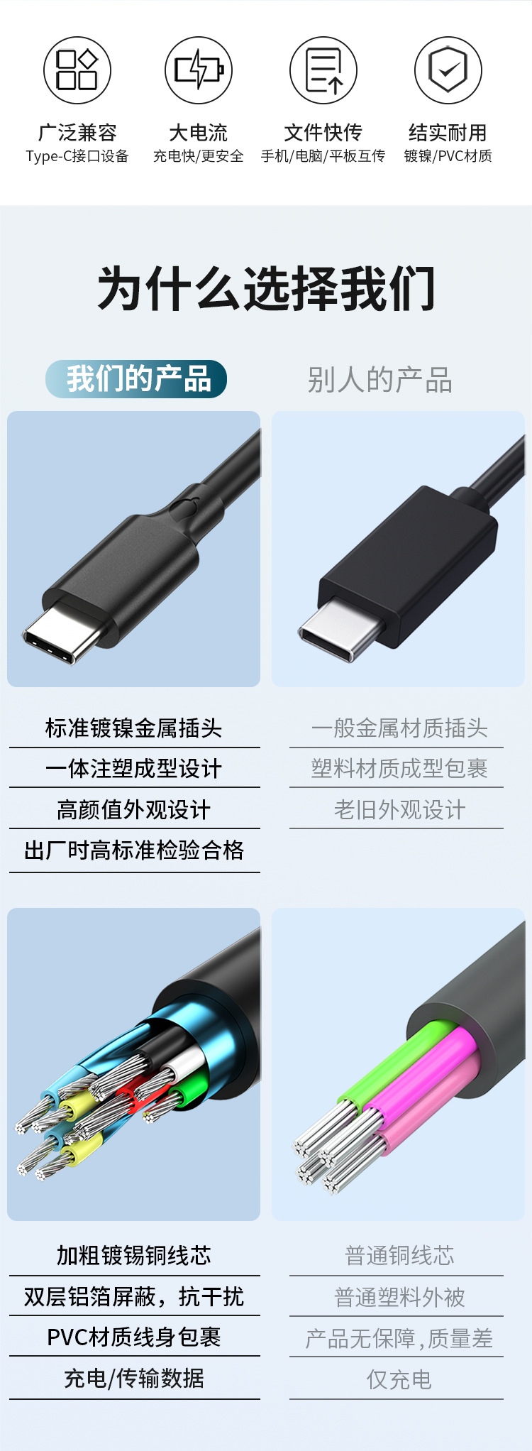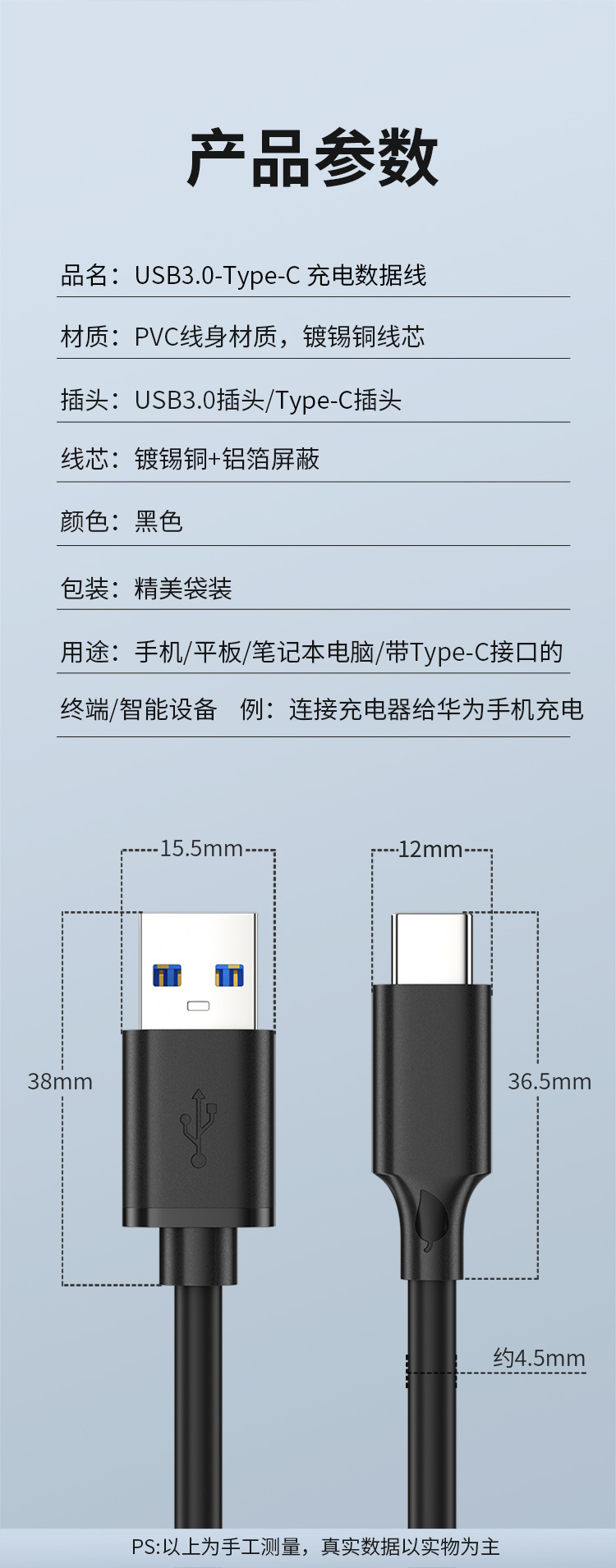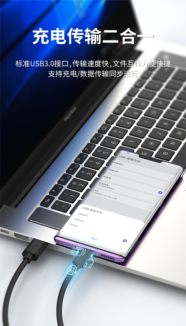 type-c数据线usb3.0转TypeC充电线10Gbps硬盘线3A60WPD手机快充线