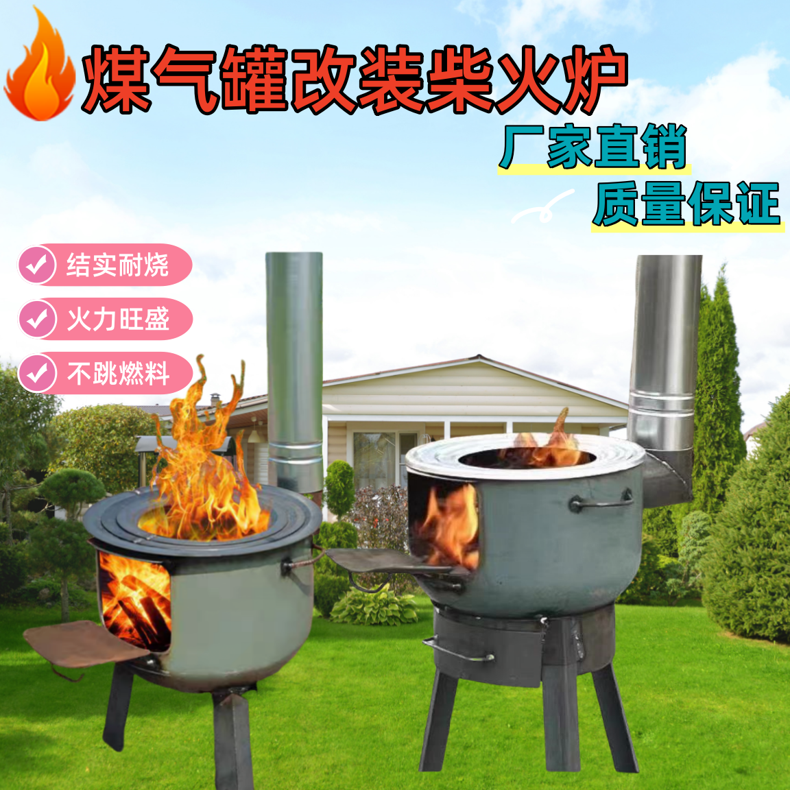 煤气罐改装户外柴火灶家用农村柴火灶烧劈柴炉地锅灶加厚柴火灶