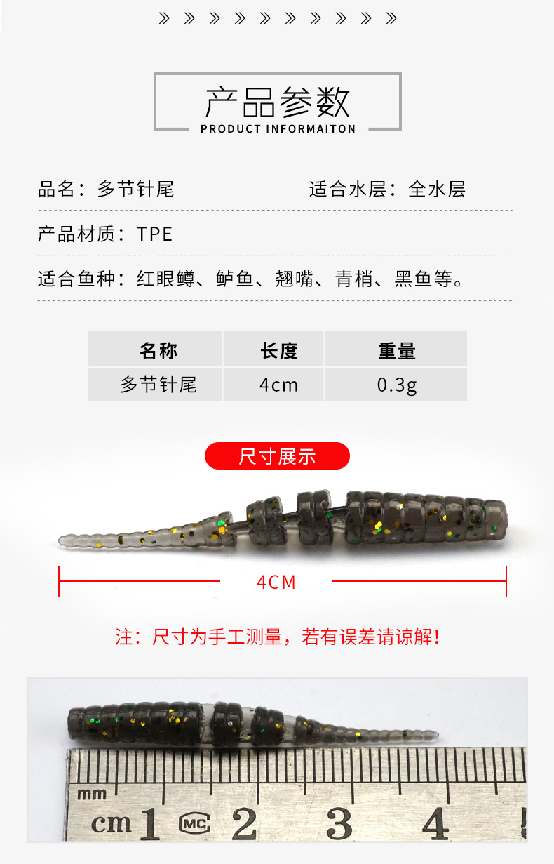 10本1包4cm/0.3gtpe浮水路亜釣り餌微物多節針尾小根釣り軟餌赤目口