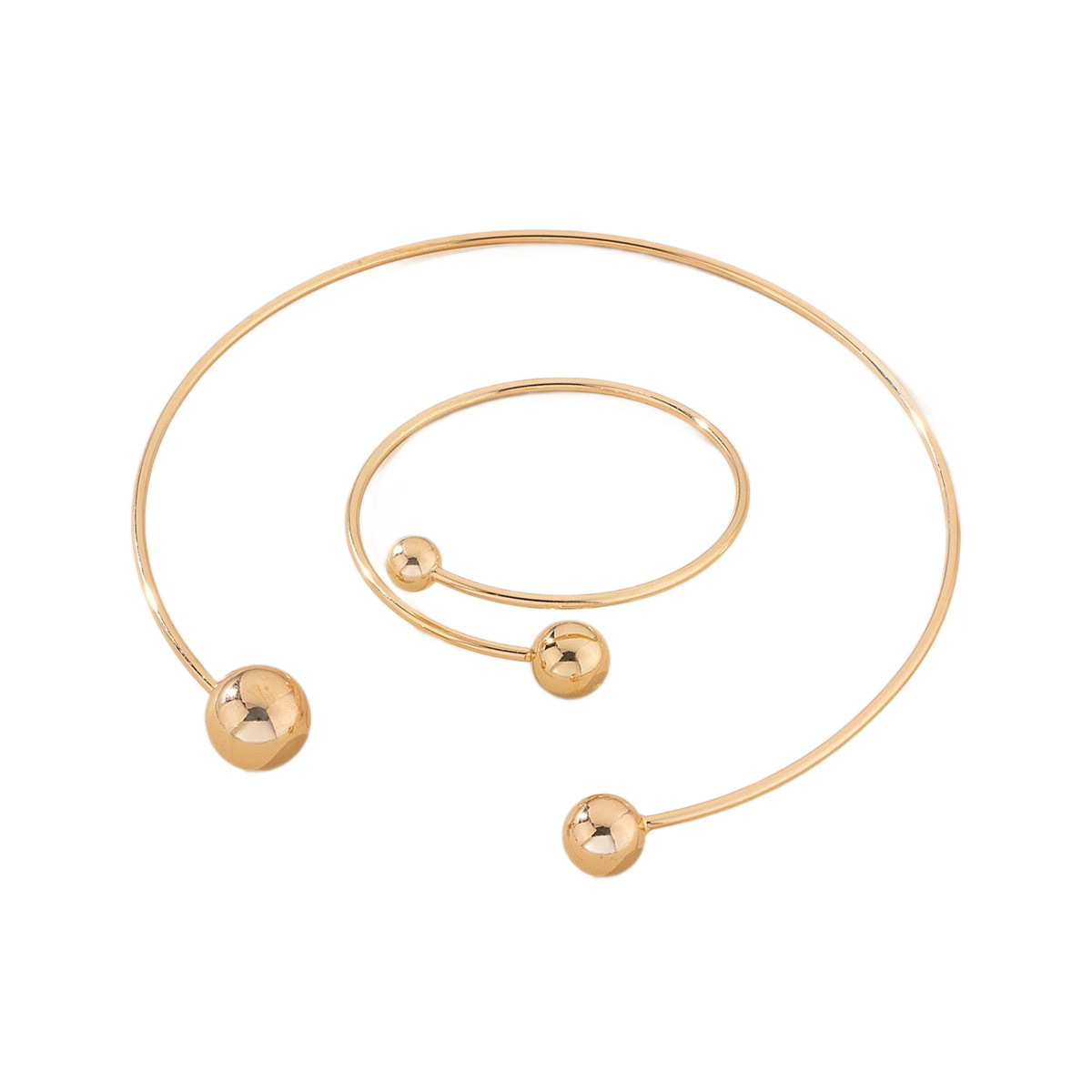 欧美夸张金属球项圈手镯套装女时尚极简风气质个性首饰厂家批发