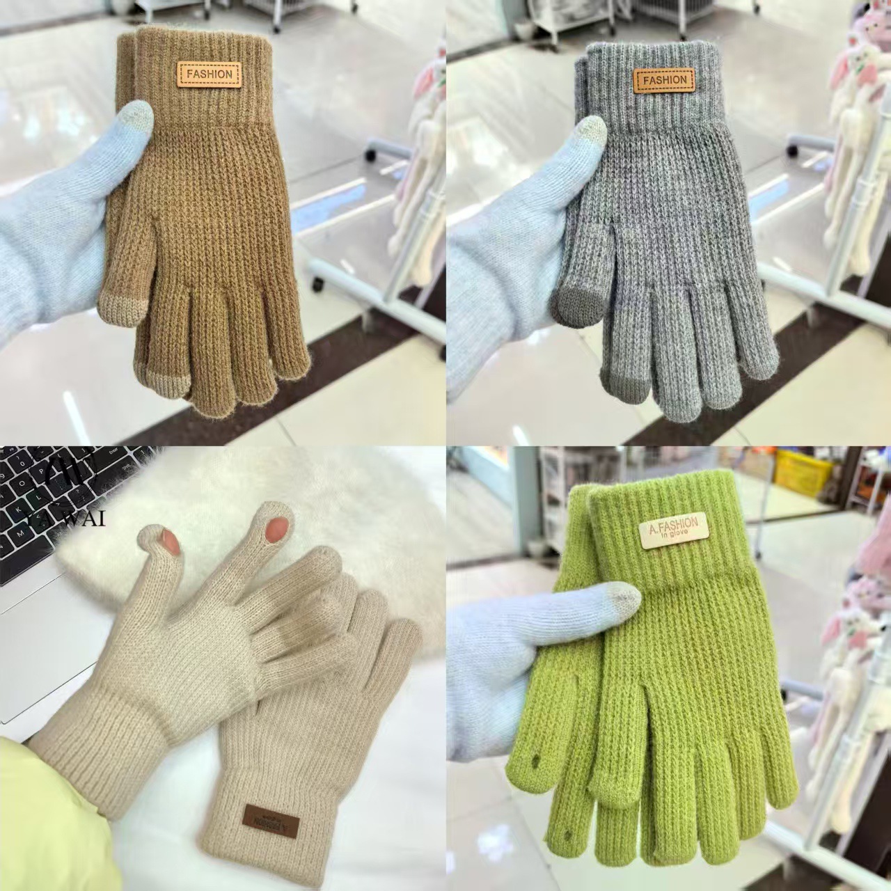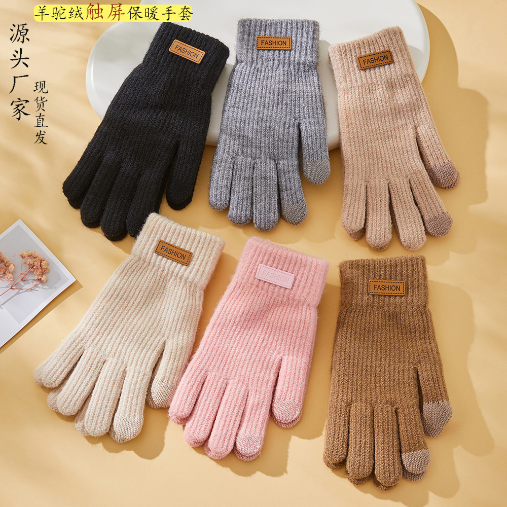 学生防風保温防寒韓型ニット毛糸手袋シンプル手袋秋冬騎行保温加毛タッチパネル