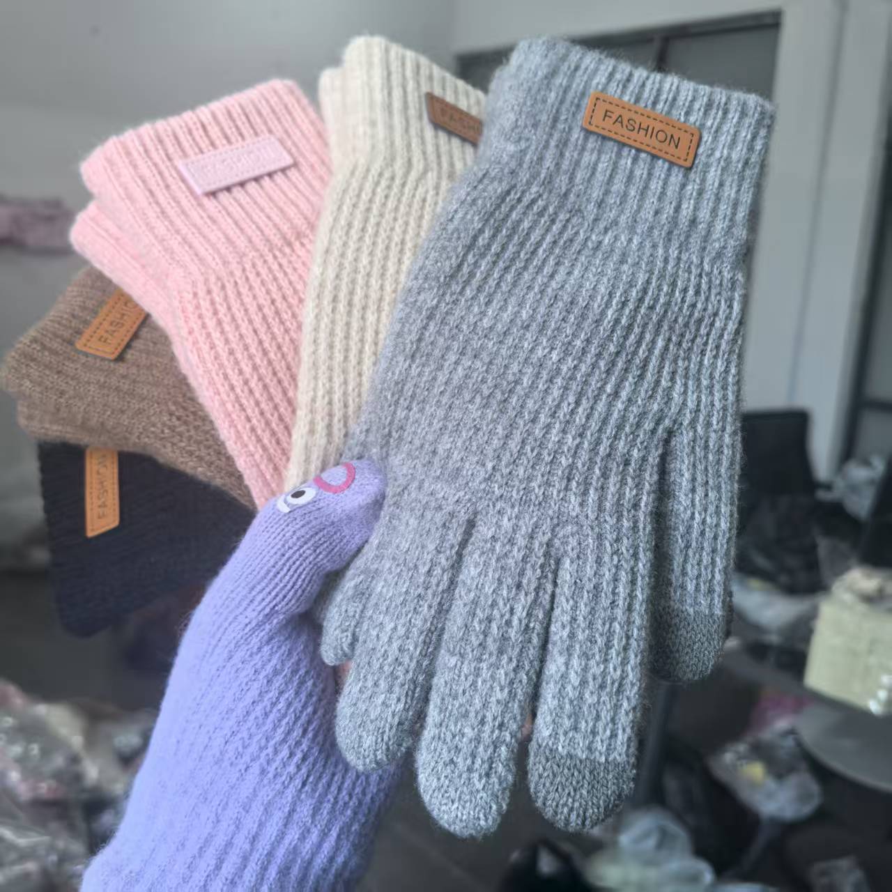 冬の保温手袋ニット保温毛糸ジャカード革標はカシミヤタッチパネル手袋ジャカードゲーム手袋に似せている