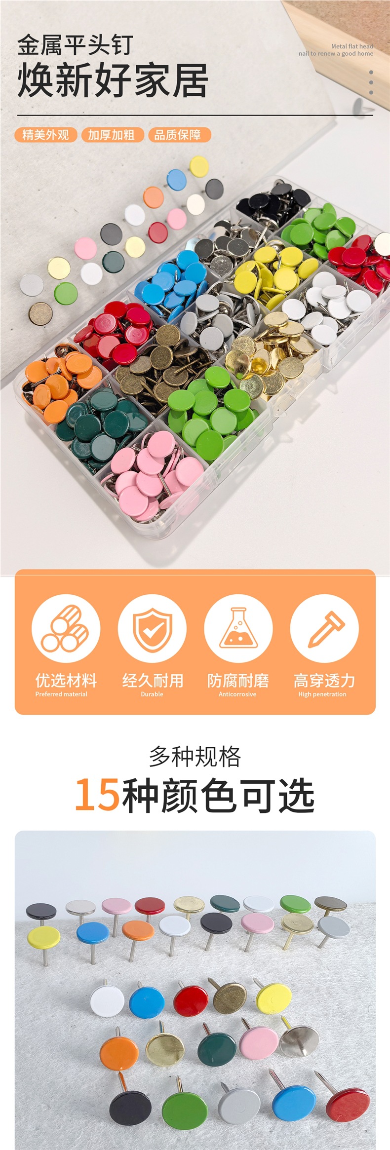 平头图钉按钉毛毡墙软木板照片墙大头钉子 装饰圆头大头针固定针