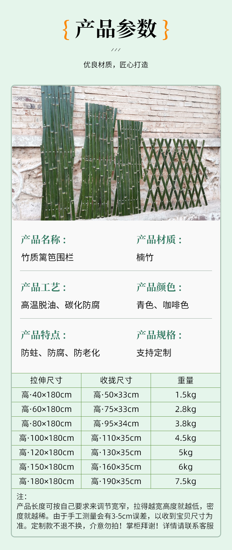 园艺菜园爬藤架装饰竹篱笆栅栏 户外花园庭院伸缩竹篱笆围栏护栏