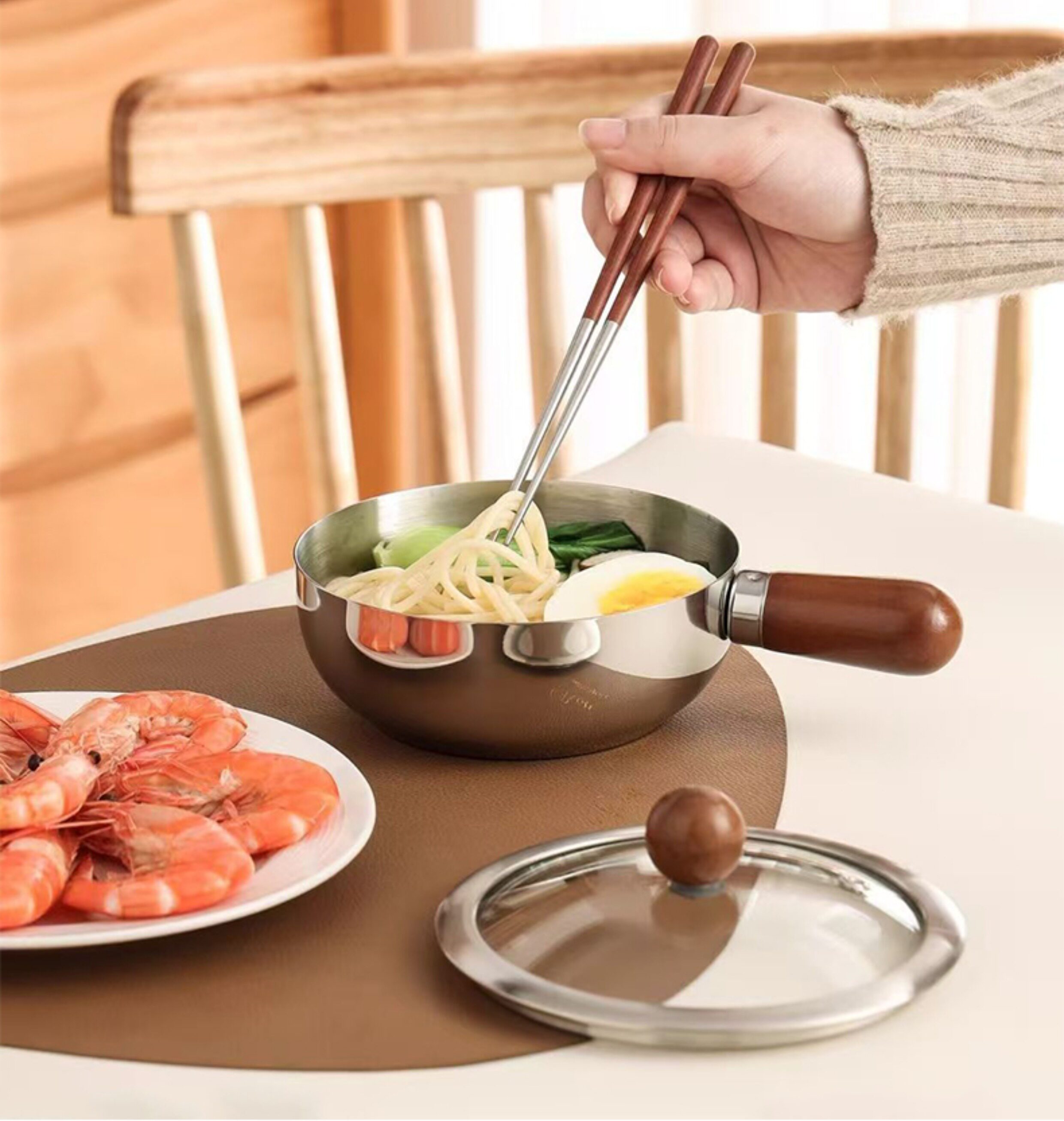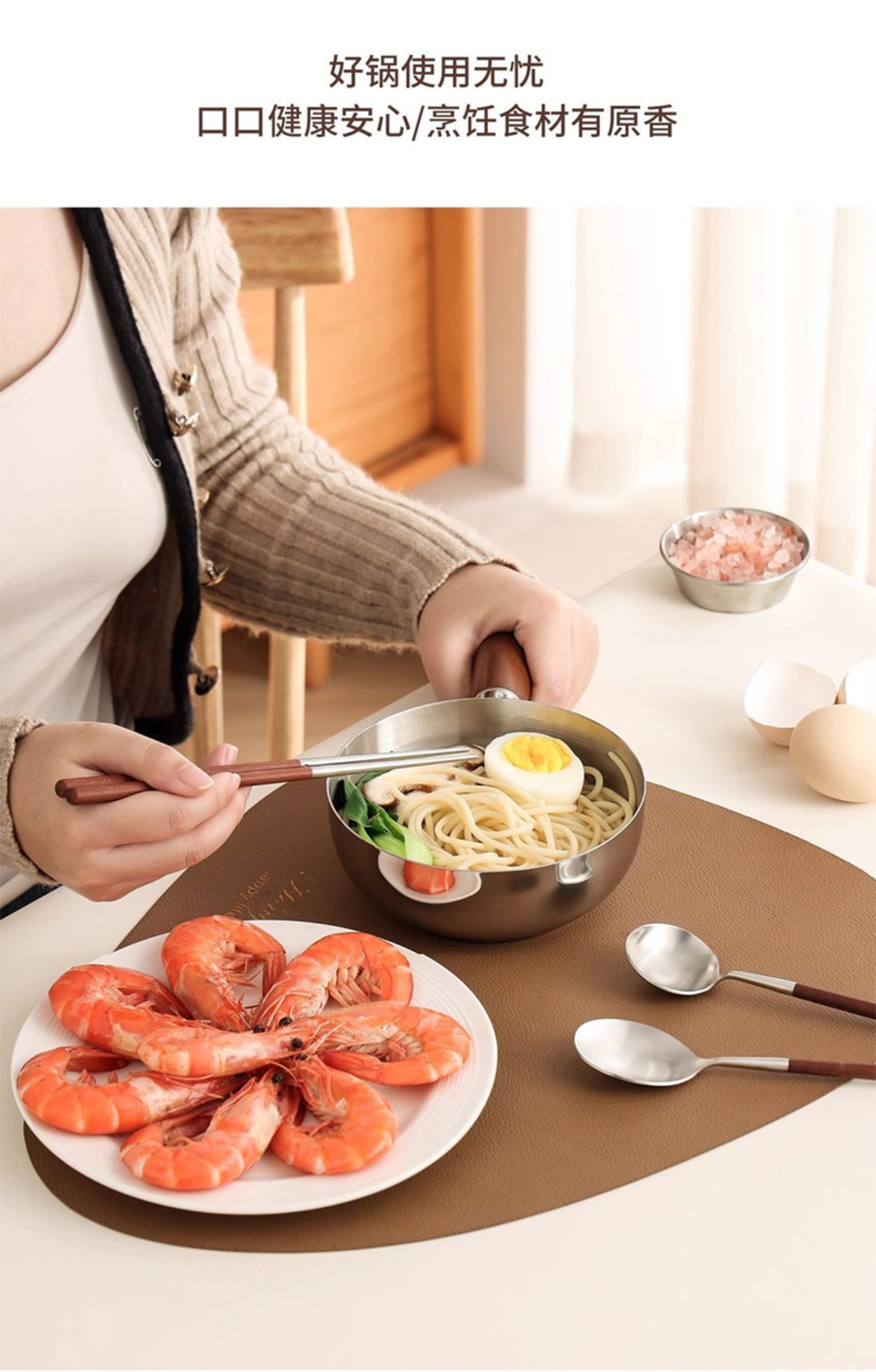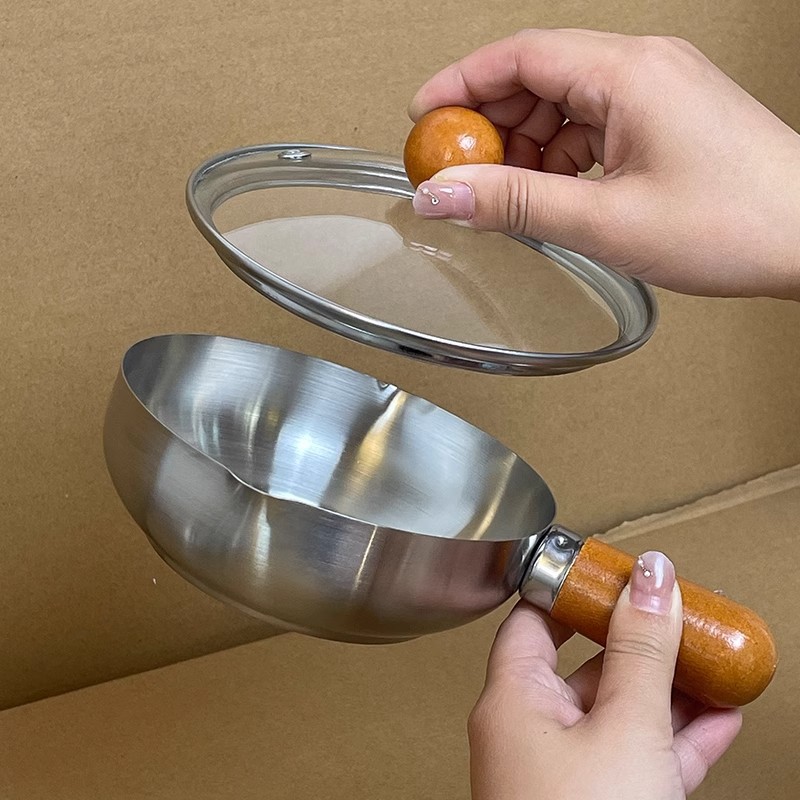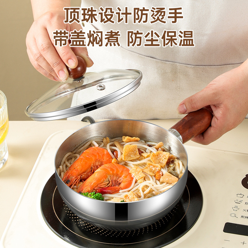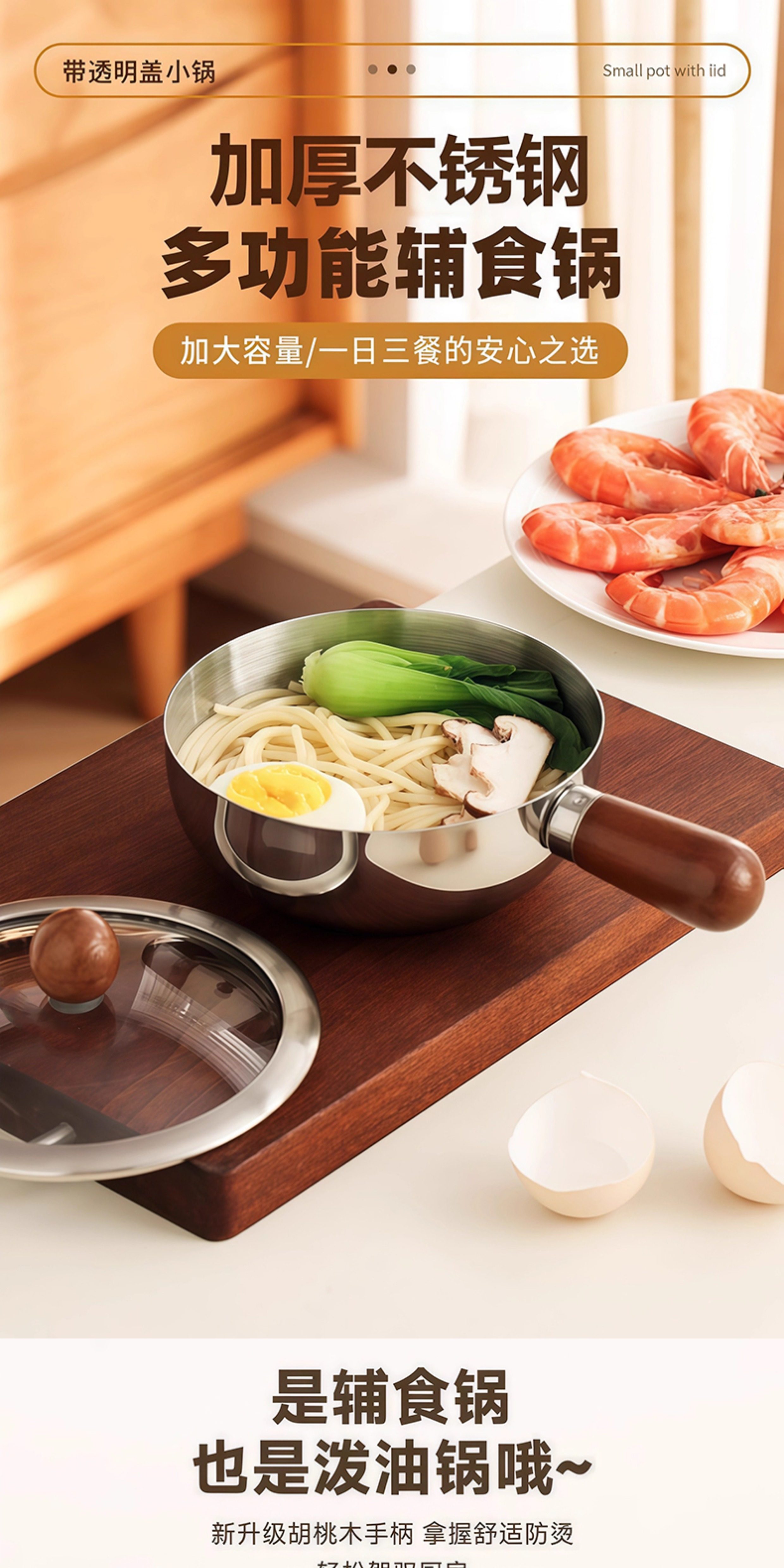 316不锈钢锅小奶锅泡面锅带盖胡桃木一人食锅早餐碗小煎锅小胖锅