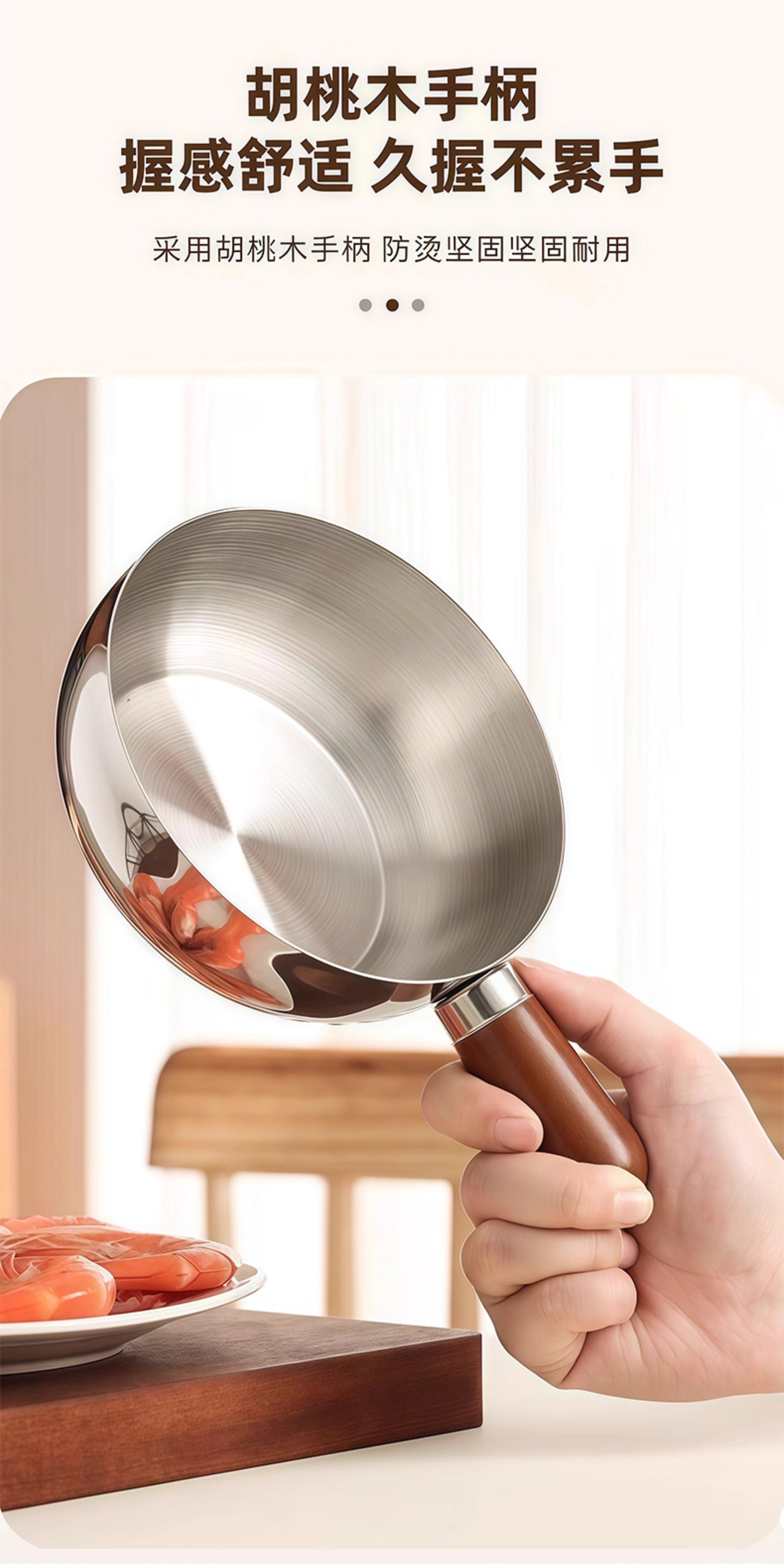 304不锈钢胡桃木小煎锅煎煮一体无涂层不粘一人小锅小吃锅小胖锅